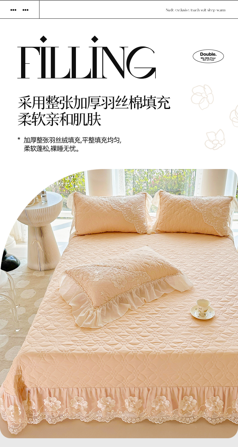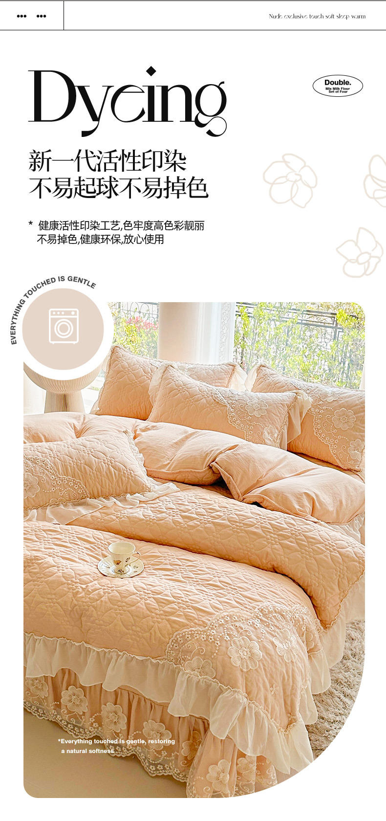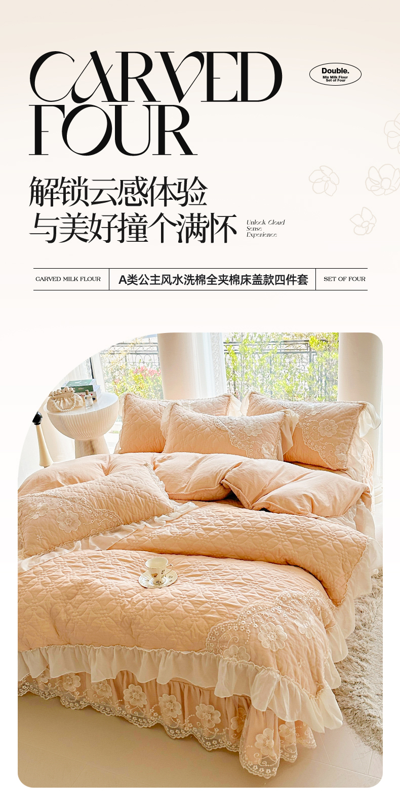 罗艺轩 2024新款公主风水洗棉全夹棉床盖款四件套-盛宴 盛宴-香槟