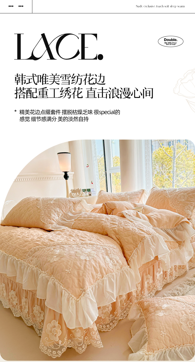 (总)罗艺轩 2025新款牛奶绒浪漫花边床裙款四件套-暖洋洋(报活动和优惠券后控价99起/控价107起),暖洋洋-白,暖洋洋-豆沙,暖洋洋-灰,暖洋洋-酒红,暖洋洋-绿,暖洋洋-奶咖