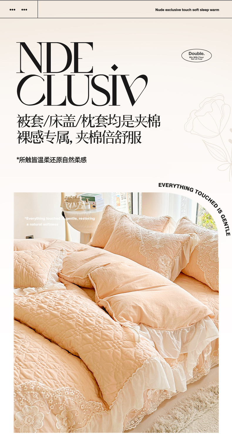 商品名称:罗艺轩 2024新款公主风水洗棉全夹棉床盖款四件套-盛宴 盛宴-香槟
