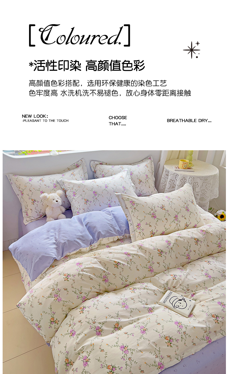 商品名称:优选良品 2025新款直播爆款全棉-ins印花系列四件套纯棉三件套床单床笠 梦幻