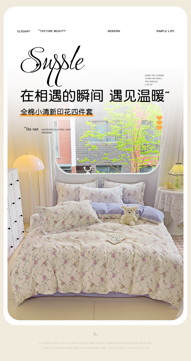 优选良品 2025新款直播爆款全棉-ins印花系列四件套纯棉三件套床单床笠 梦幻