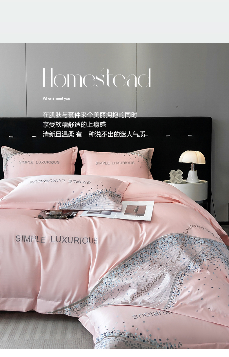 商品名称:欧乐蒂 2025新款星梦-高支高密新疆长绒棉四件套-终版 星梦-温馨粉