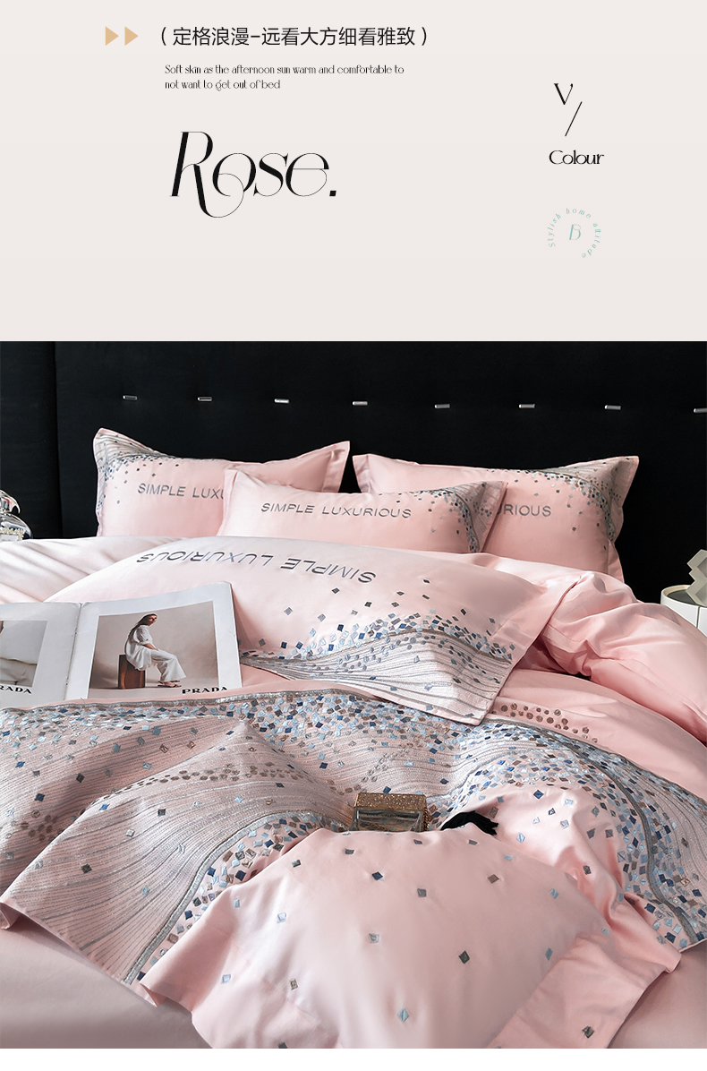 (总)欧乐蒂 2025新款欧式水洗贡缎全棉刺绣四件套-欧雅终版,宾利蓝,玉色,白色,粉色,豆沙,酒红,香槟,高级灰