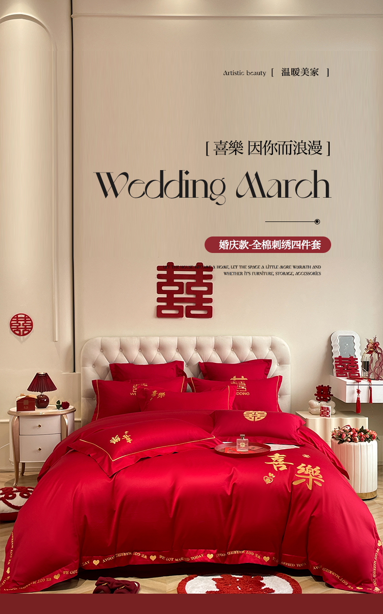 (总)欧乐蒂 2025新款全棉刺绣婚庆四件套,佳偶天成,龙凤和美,龙姿凤彩,玫瑰恋人,倾城之恋,双囍临门,甜蜜爱情,囍结良缘