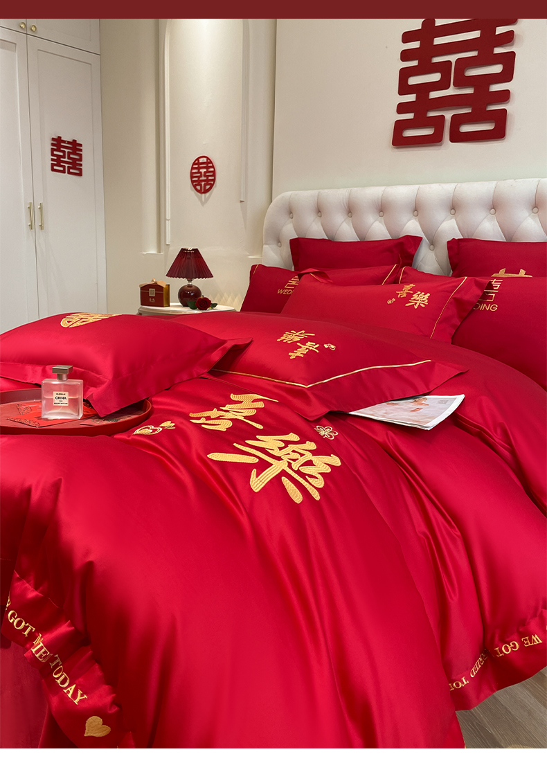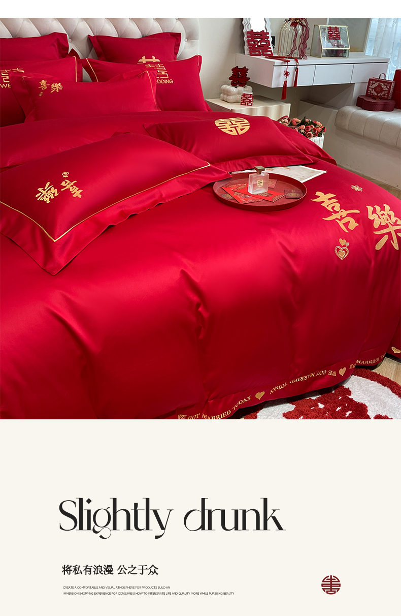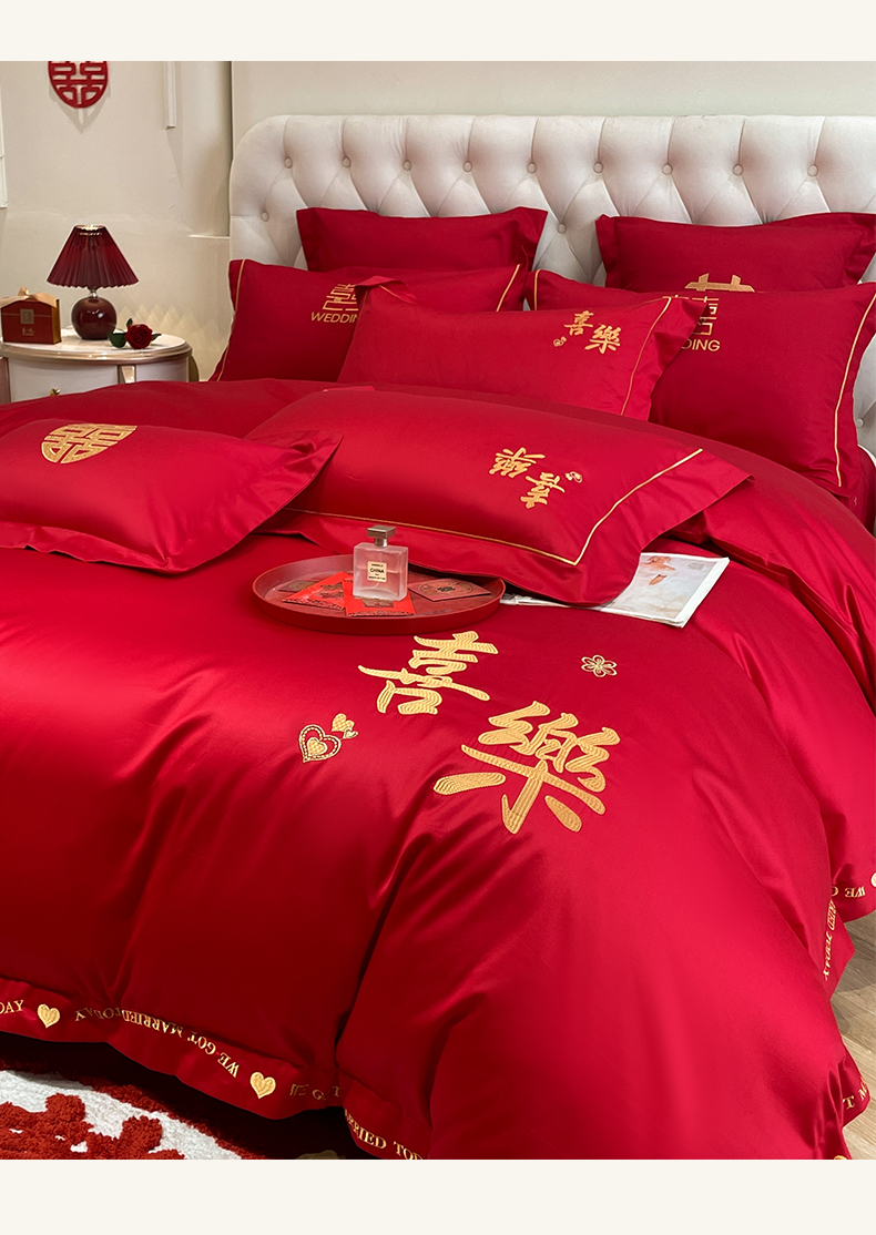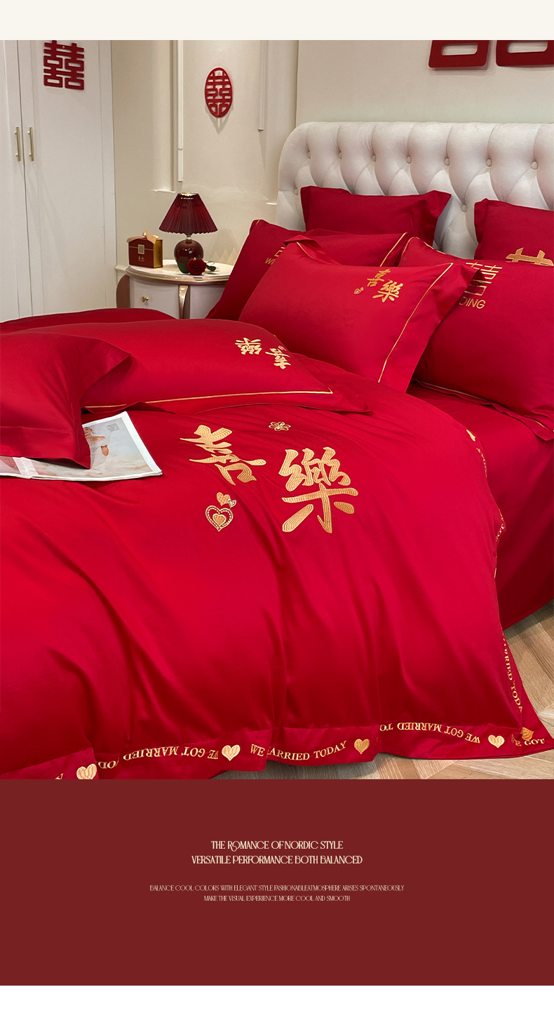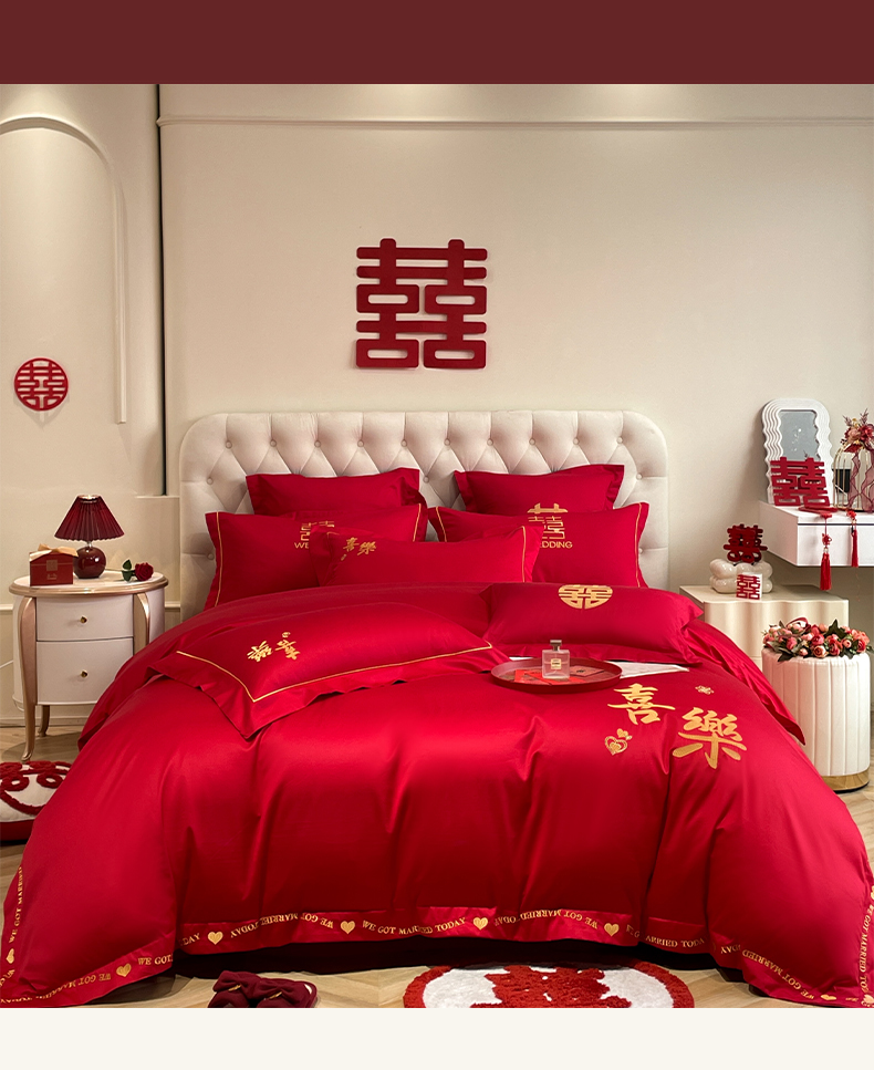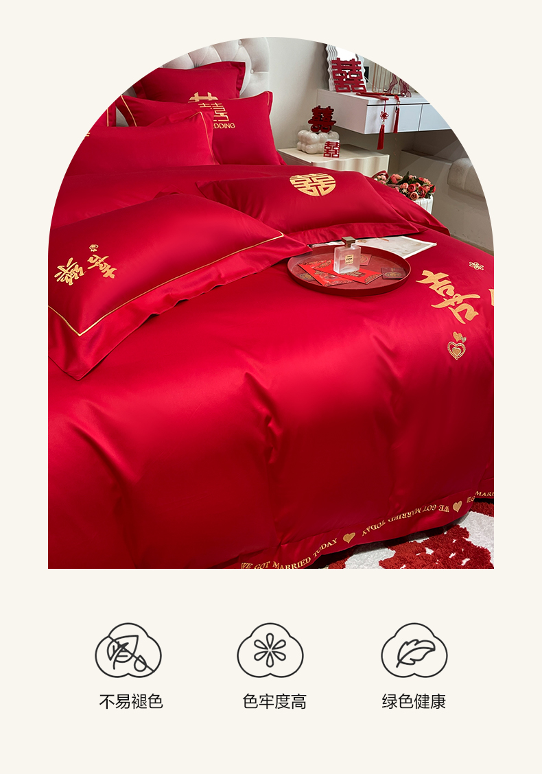 欧乐蒂 2025新款设计师原创亲肤棉婚庆四件套 喜乐