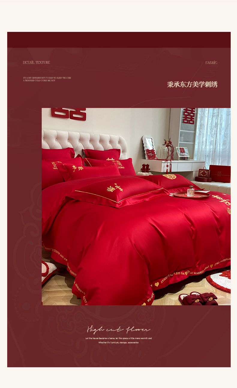 (总)欧乐蒂 2025新款亲肤棉刺绣花边婚庆四件套-倾城,倾城-金,倾城-喜红