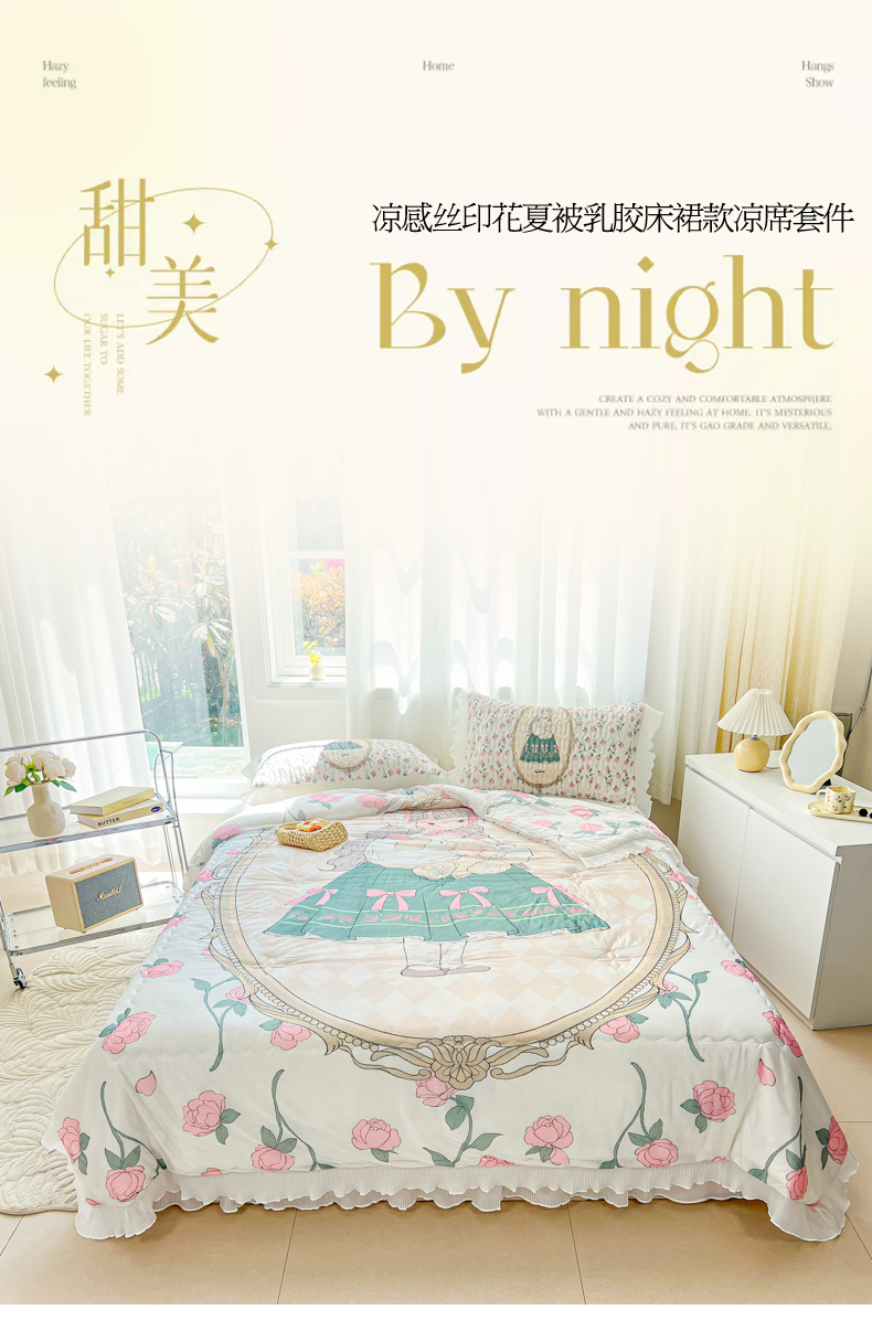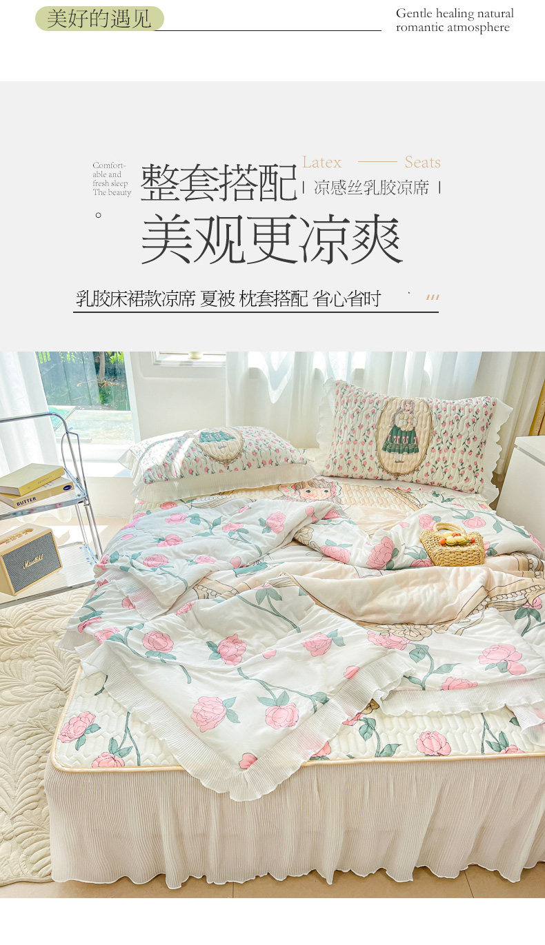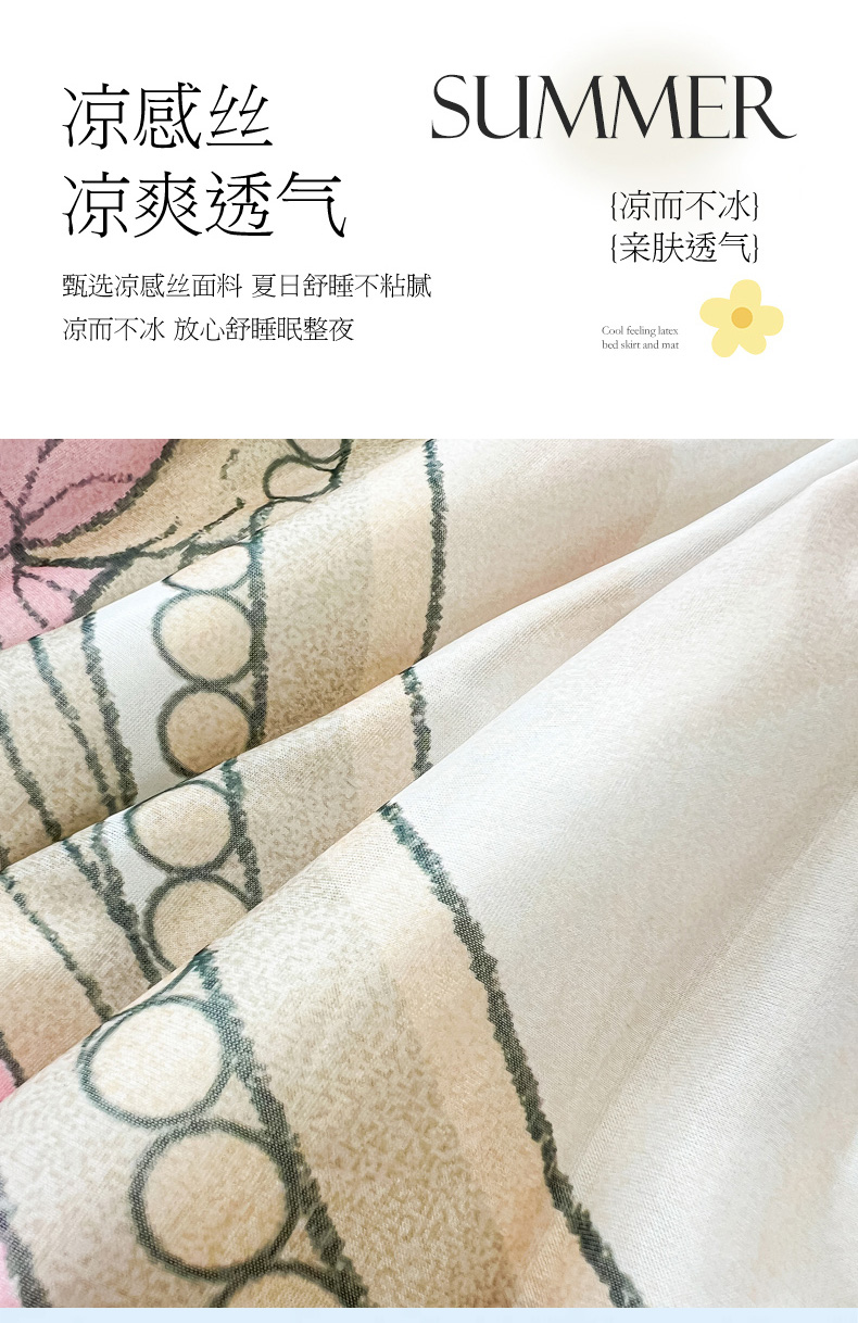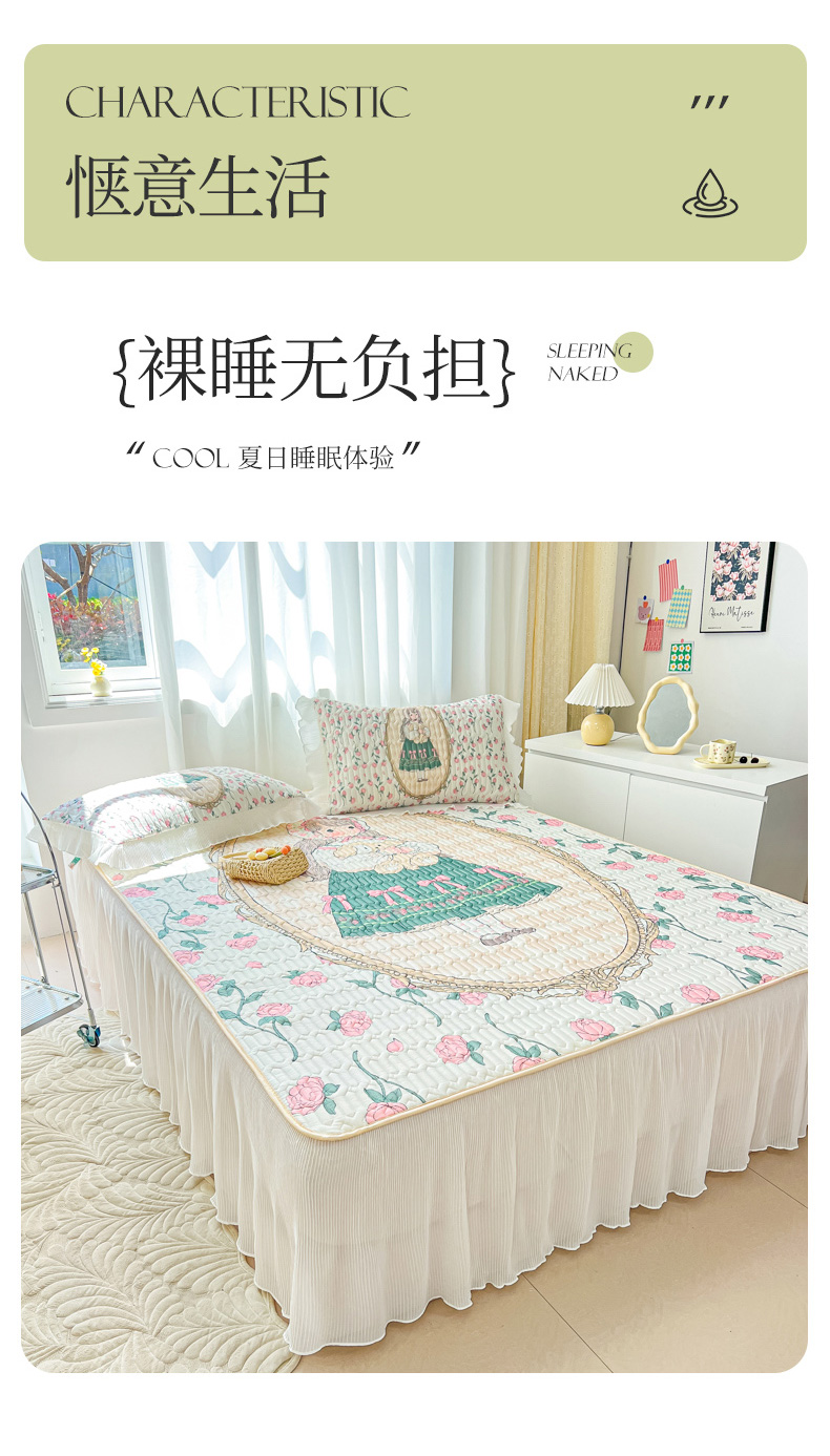 慕澄家纺 2024新款大版印花床裙款乳胶凉席-凉席三件套 秘密花园