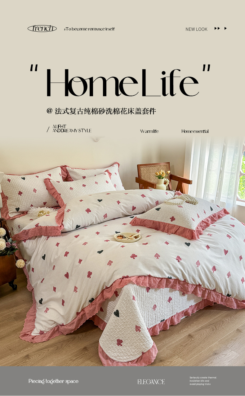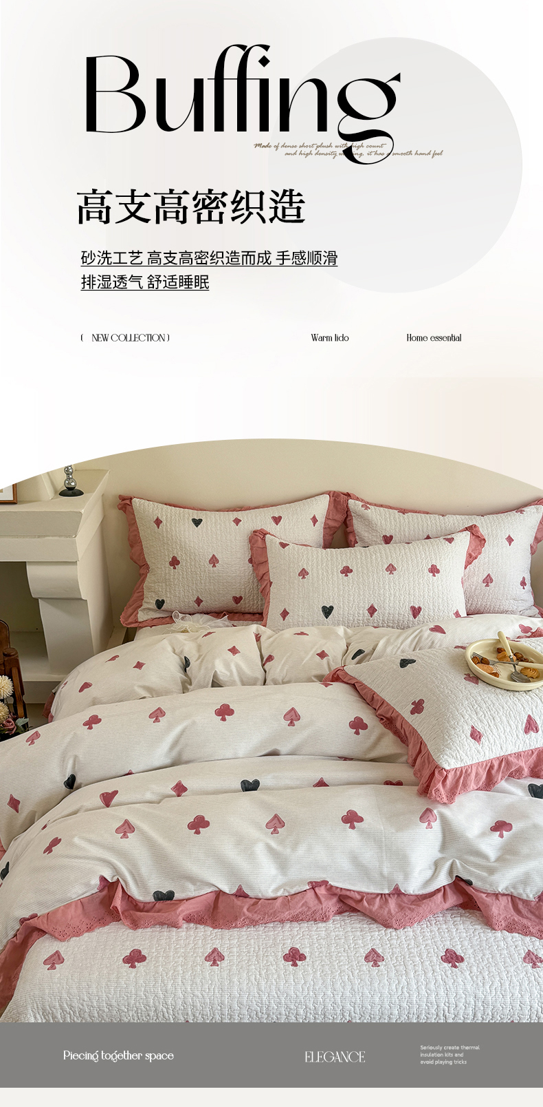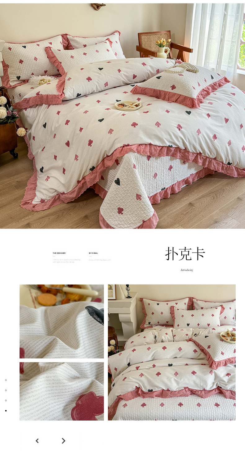 添越 2024新款纯棉砂洗床盖 扑克卡