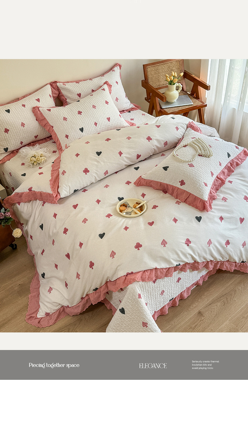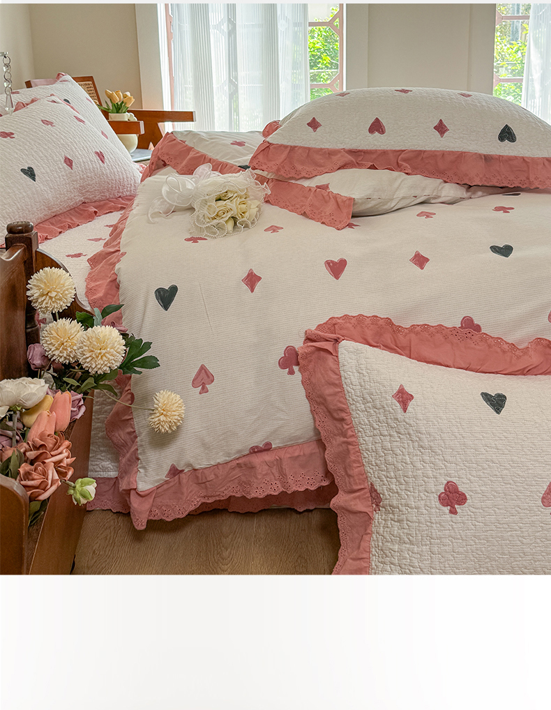 添越 2024小清新韩版蕾丝款花边纯棉夹棉床盖三件套全棉爱心熊-蕾丝款,爱心熊-蕾丝款