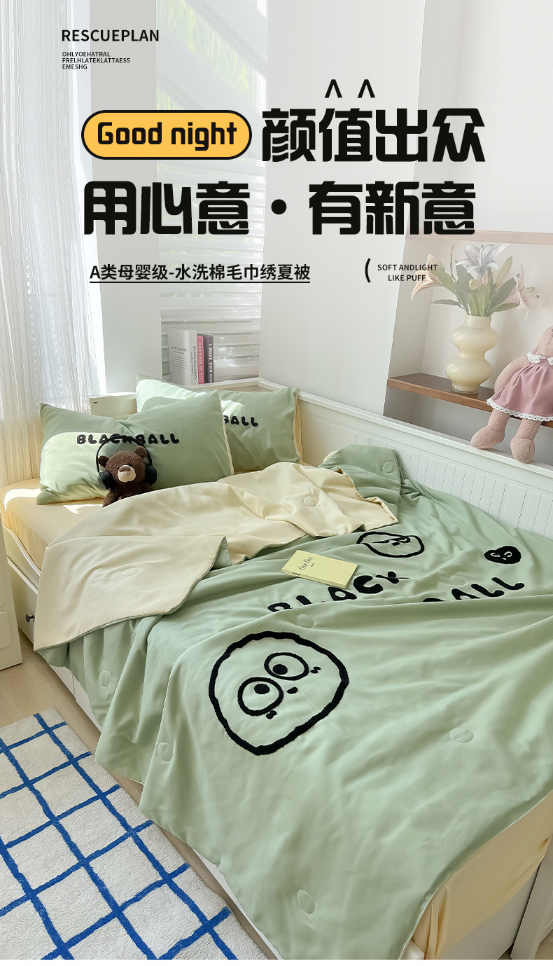 (总)眠帛家居 2024新款水洗棉毛巾绣夏被四件套精灵系列A类风格二