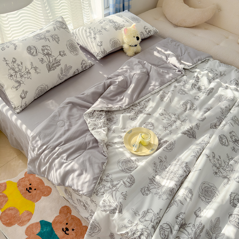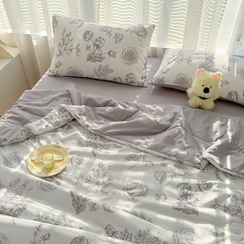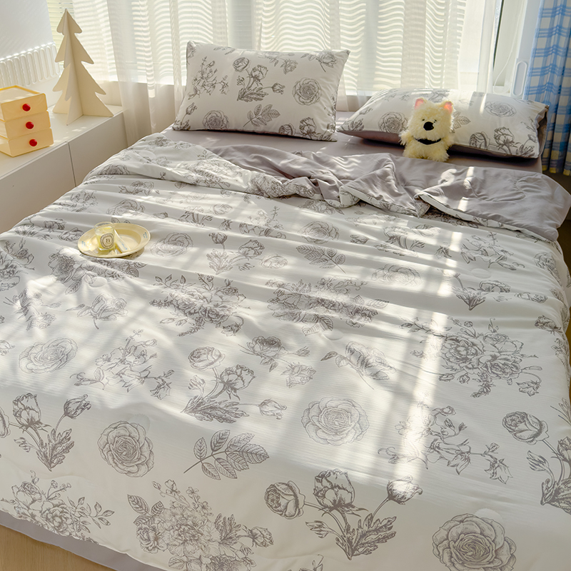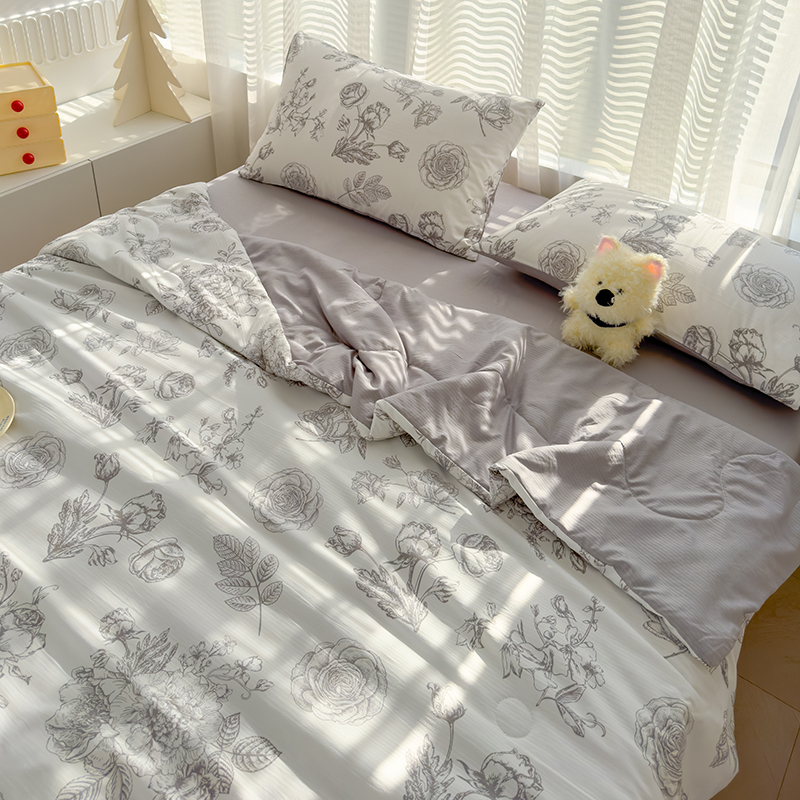 慕尚家纺 2025新款亲肤泡泡棉卡通印花夏被单品夏被四件套 玫瑰花园