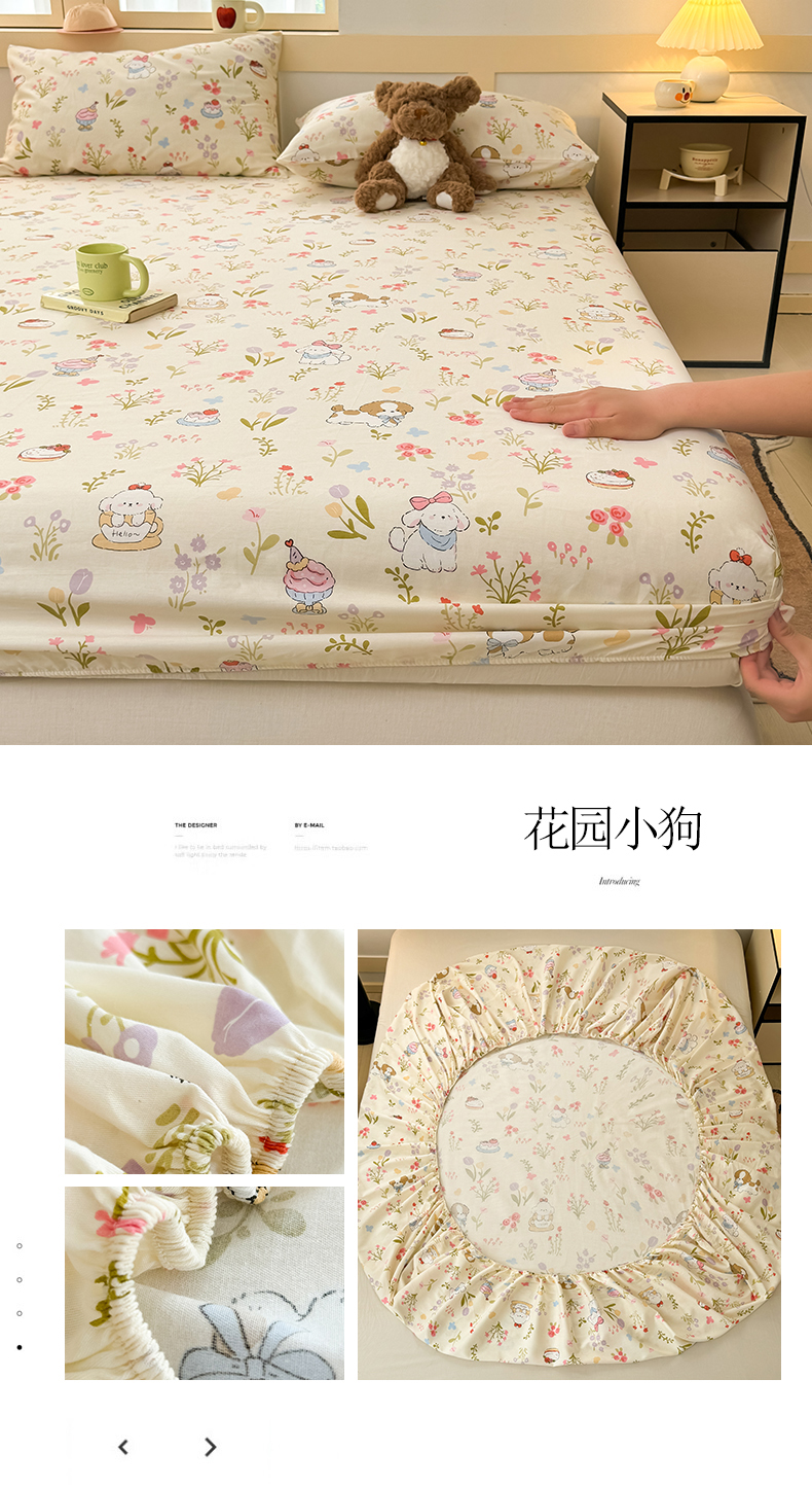商品名称:寻米 2024新款全棉印花床笠系列 花园小狗