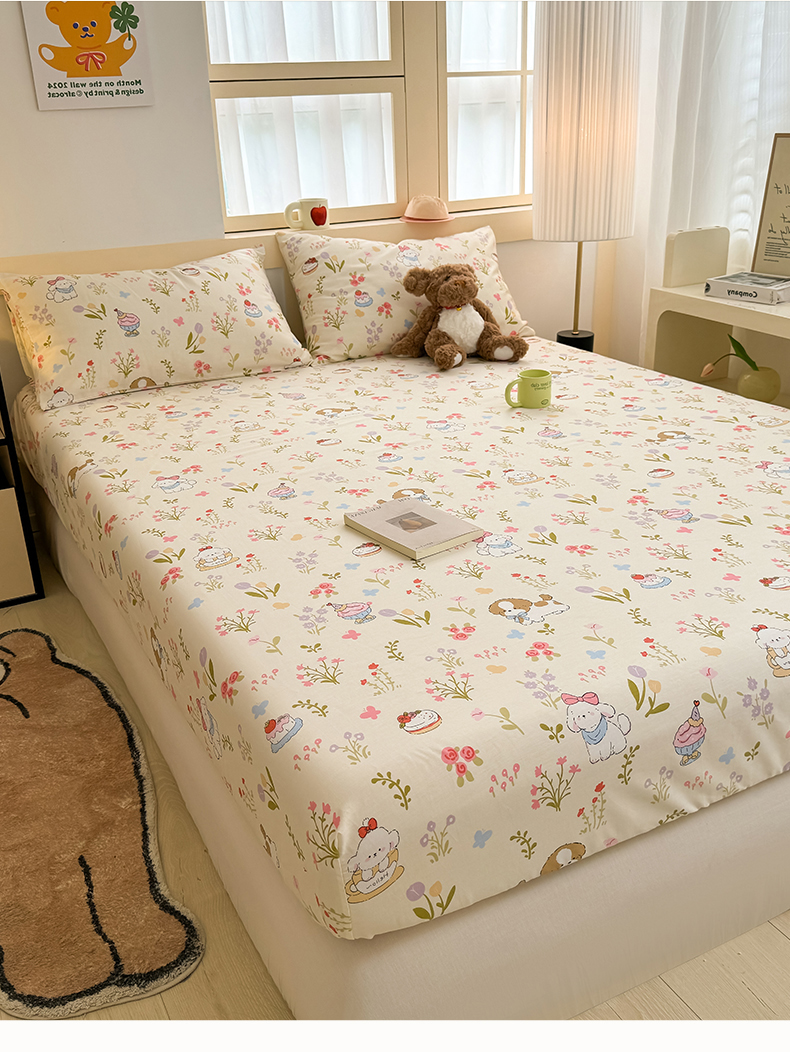 寻米 2024新款全棉印花床笠系列 花园小狗
