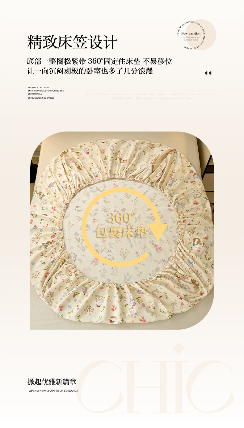 (总)寻米 2025新款A类全棉印花床笠系列,巴洛克暖阳,繁花锦绣,繁花晚庭,狗狗派对,桂馥兰香,花涧入梦,假日暖阳,小猫球球,小猫甜品屋