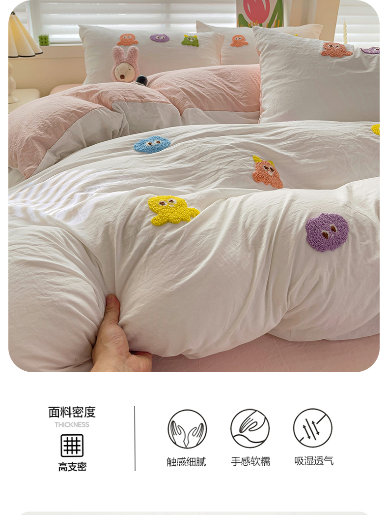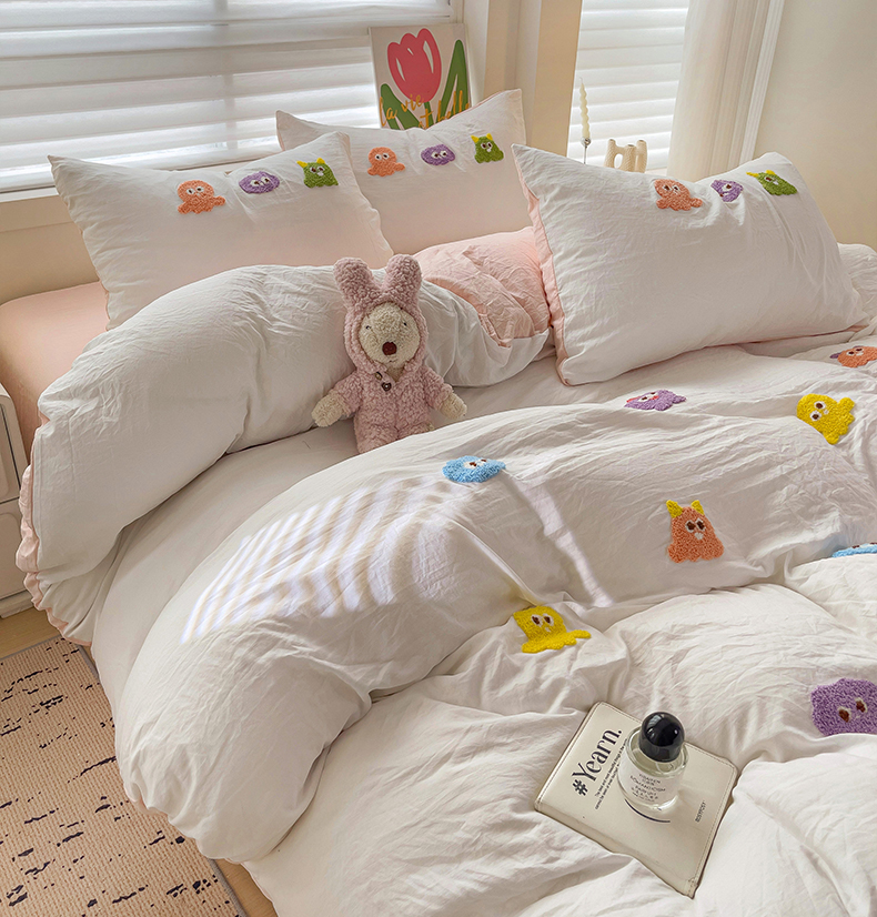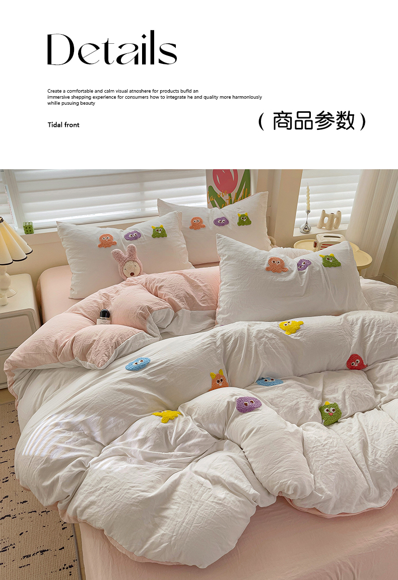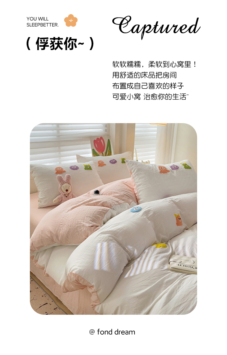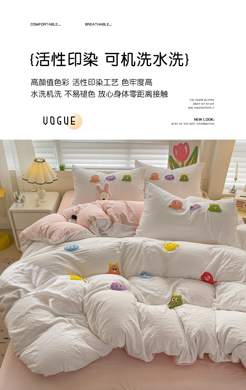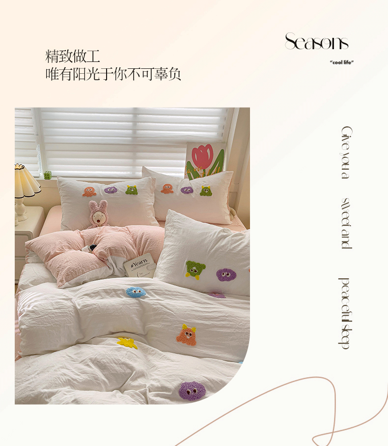 当前位置: 91家纺网 > 商品网购 > 床品套件 > 四件套 > 水洗棉四件套 > 韩巢家纺 2024热款超柔水洗棉毛巾绣床上用品四件套学生宿舍三件套-小精灵系列(提供精美卖家秀 ) 小精灵白浅粉