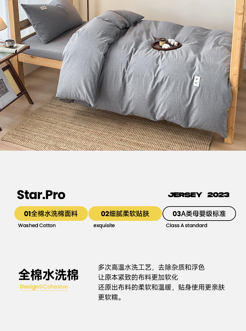 当前位置: 91家纺网 > 商品网购 > 床品套件 > 三件套 > 21度C 2024新款色织全棉水洗棉学生三件套 洛卡浅灰