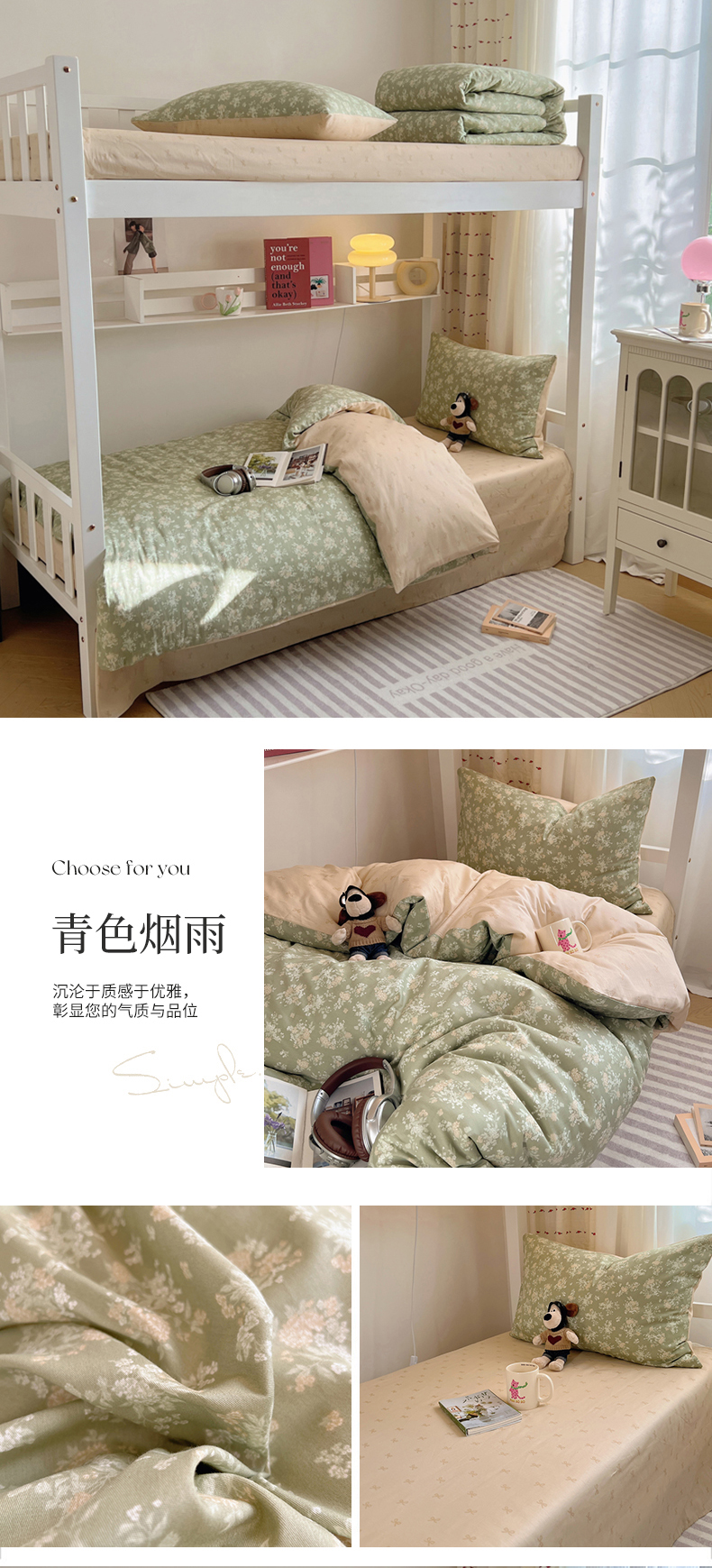 当前位置: 91家纺网 > 商品网购 > 床品套件 > 三件套 > 富瑞阁2024新款13070学生宿舍全棉三件套 青色烟雨