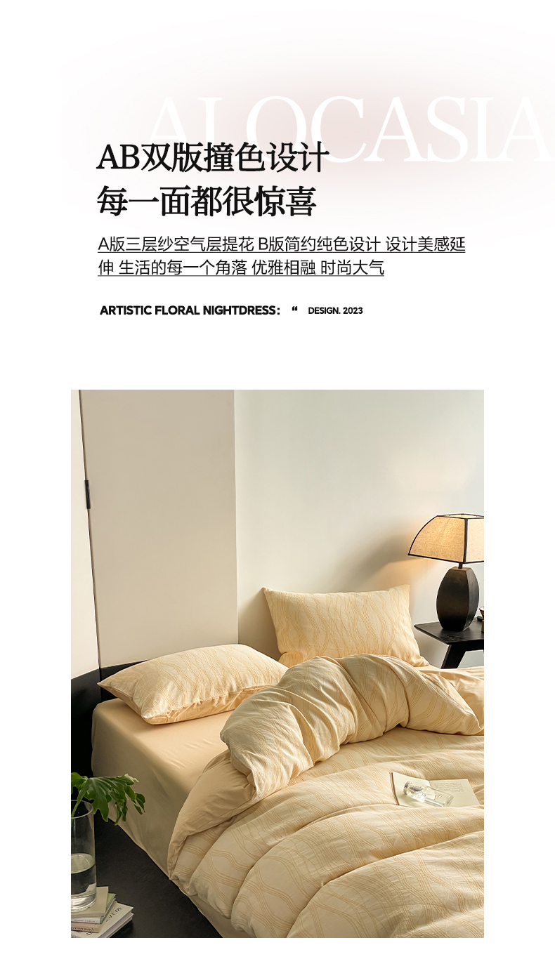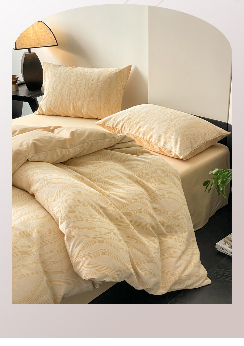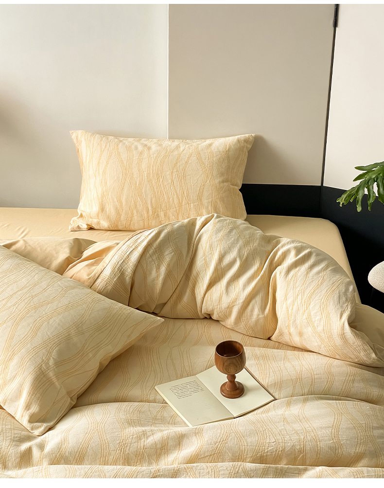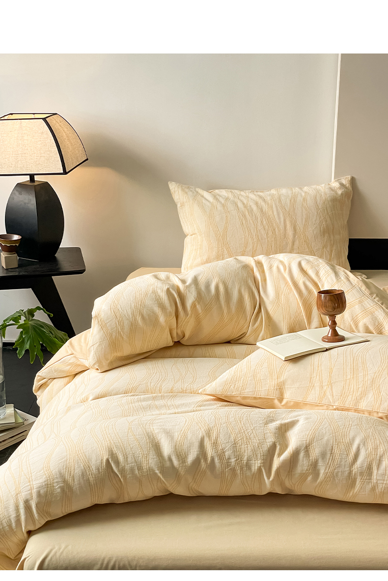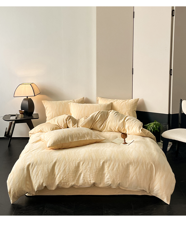 当前位置: 91家纺网 > 商品网购 > 床品套件 > 四件套 > 全棉普通四件套 > 莱茵家居 2024新款40sA类全棉水洗绵三层纱提花四件套-流年系列 流年-杏仁黄