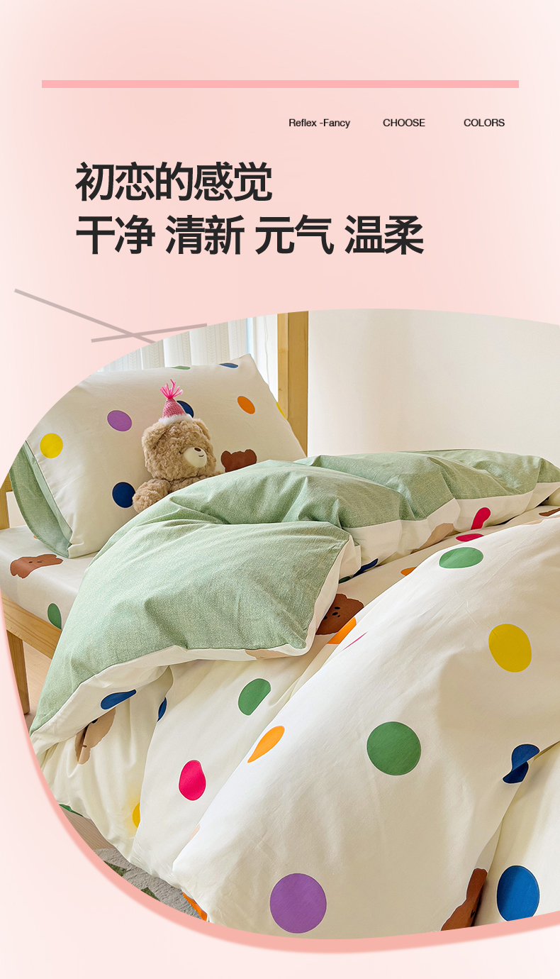 当前位置: 91家纺网 > 商品网购 > 床品套件 > 多件套 > 多件套 > 名兮家居 2024新款全棉印花学生款多件套 波点小熊
