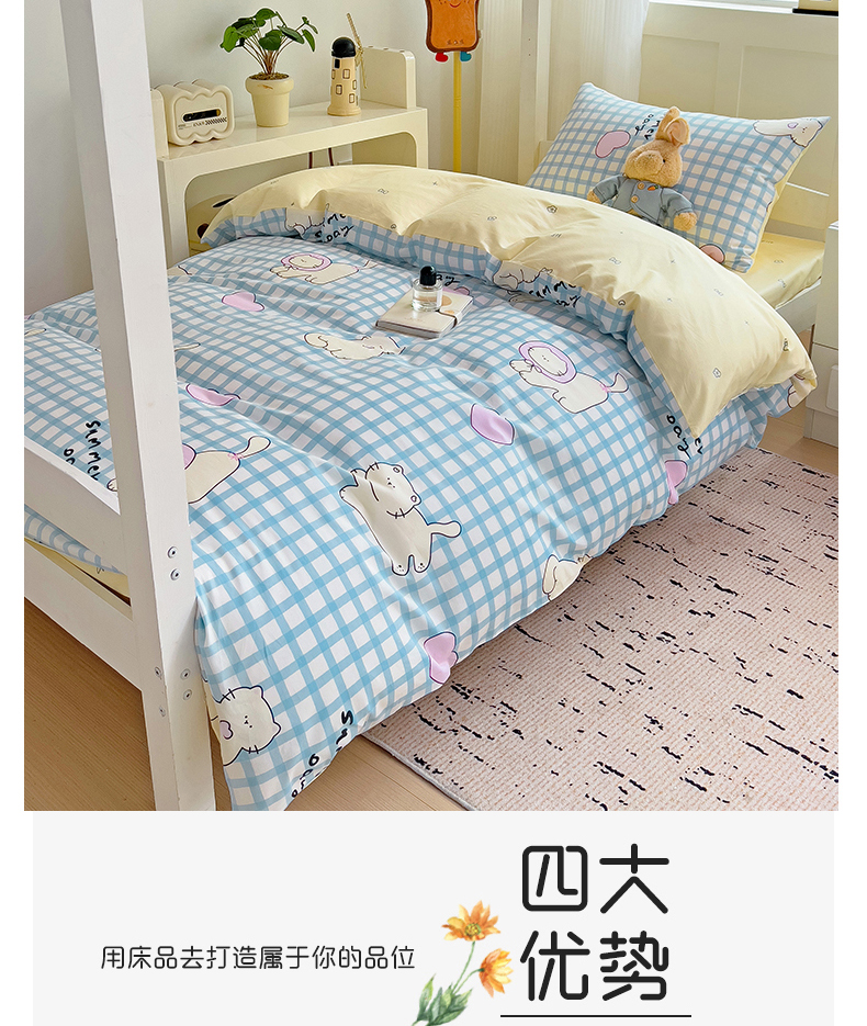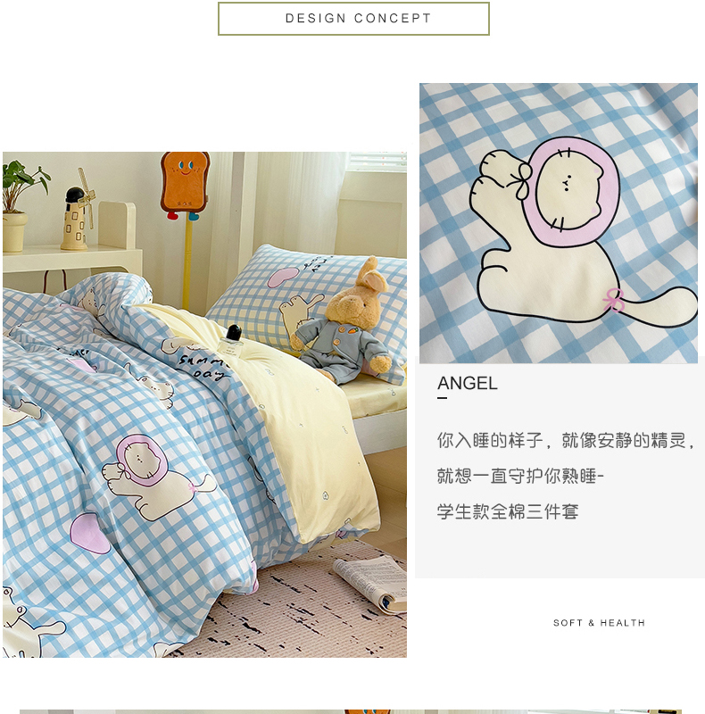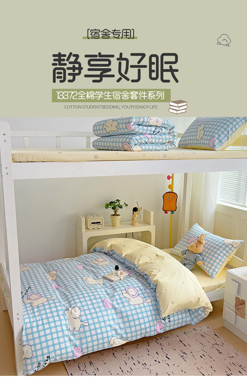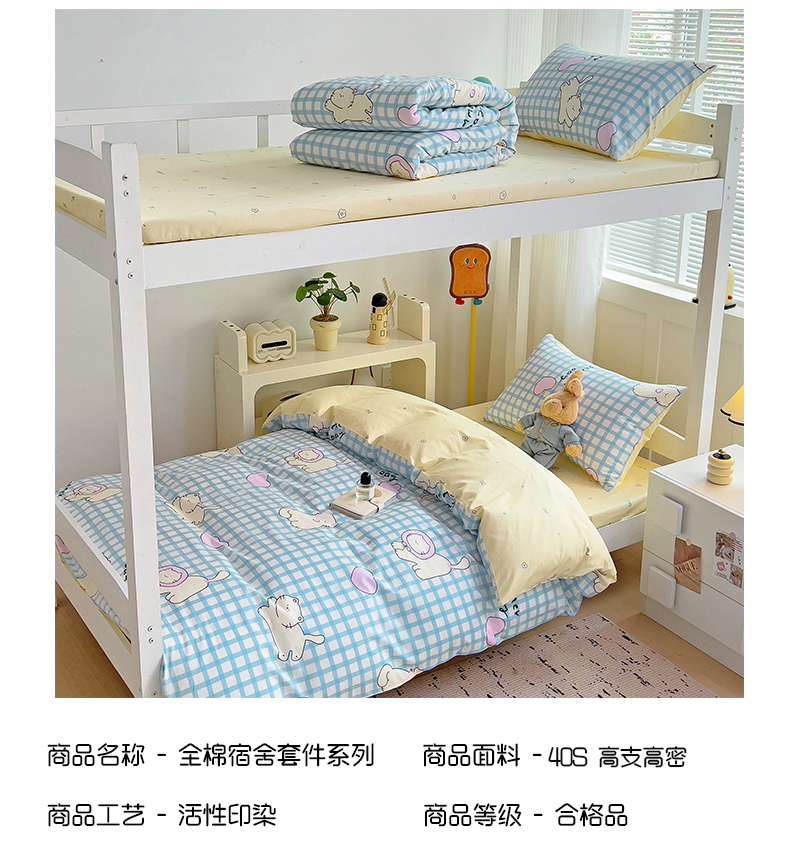 当前位置: 91家纺网 > 商品网购 > 床品套件 > 四件套 > 全棉普通四件套 > 麦伦家居 2024新款40支13372全棉斜纹学生上下铺床品系列 喵星人
