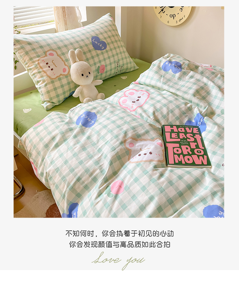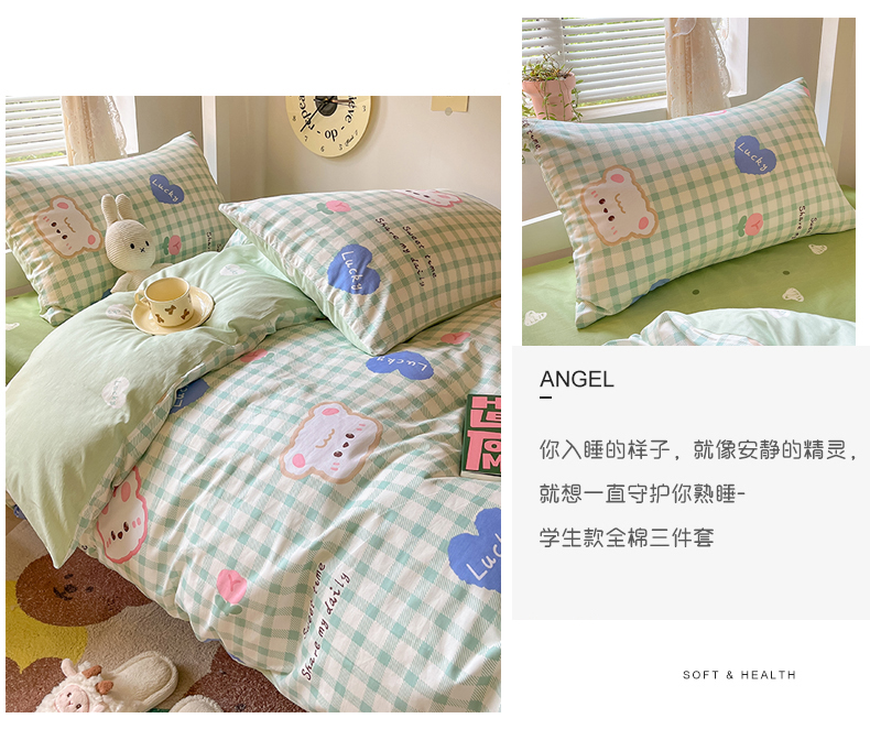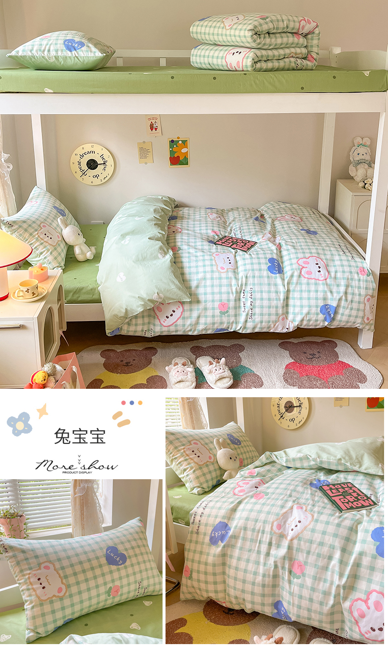 当前位置: 91家纺网 > 商品网购 > 床品套件 > 四件套 > 全棉普通四件套 > 麦伦家居 2024新款40支13372全棉斜纹学生上下铺床品系列 兔宝宝