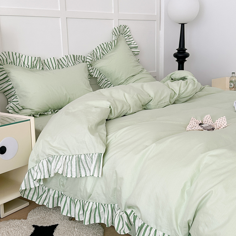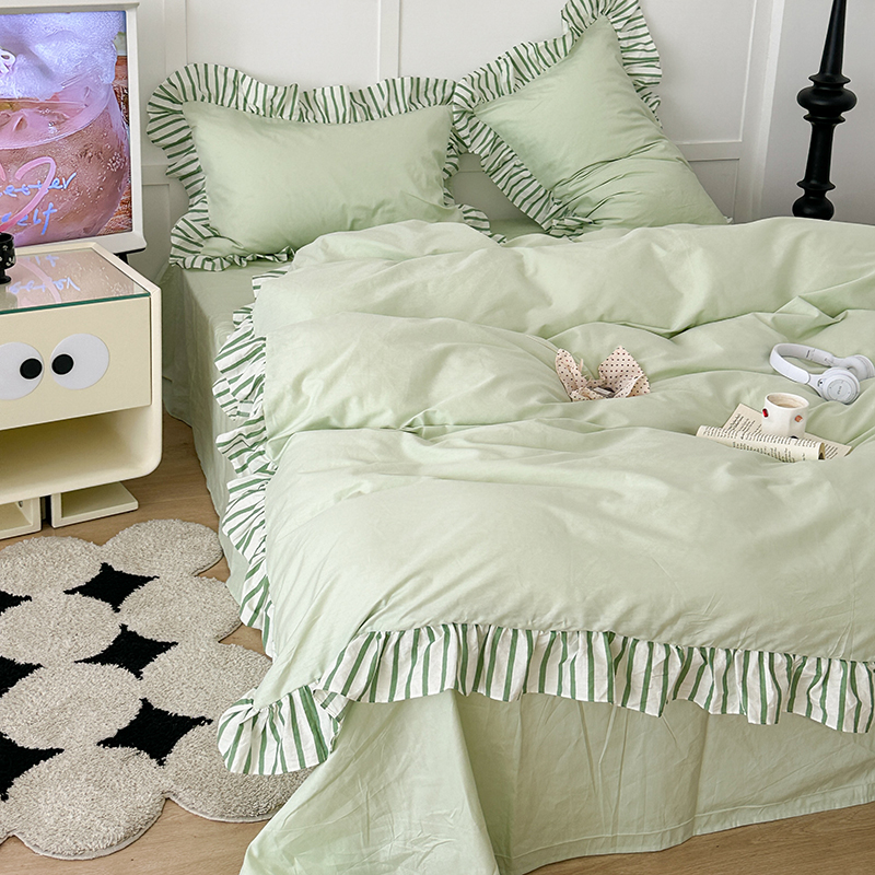 商品名称:昔可家纺 2024新款纯色亲肤条纹花边四件套 薄荷绿条