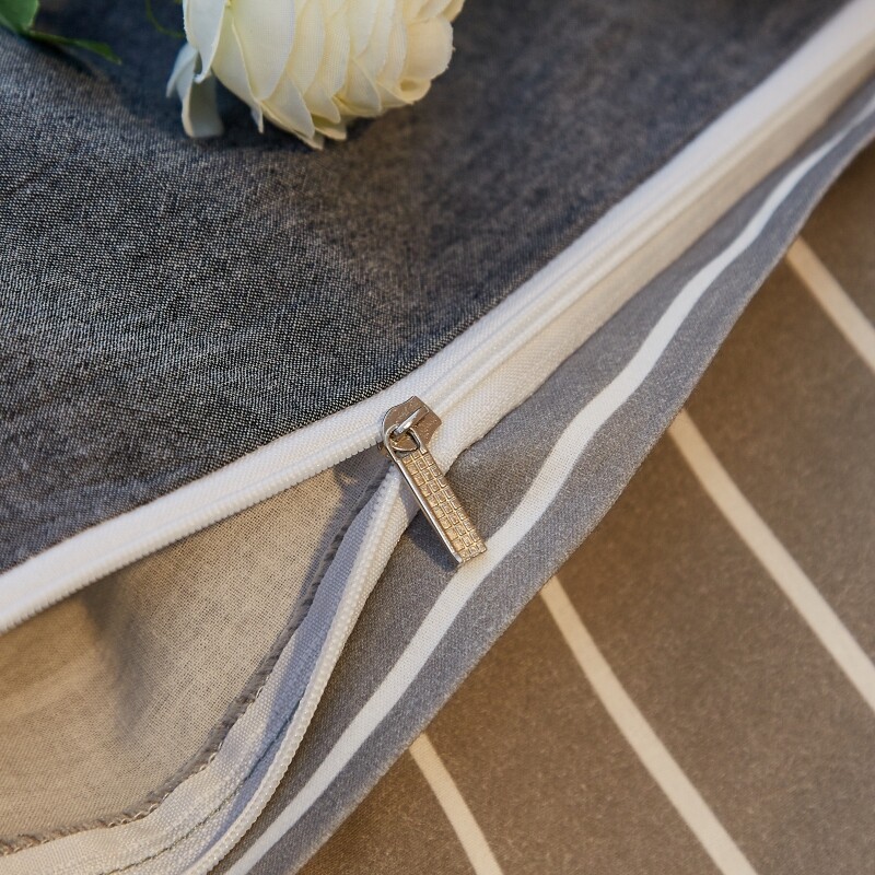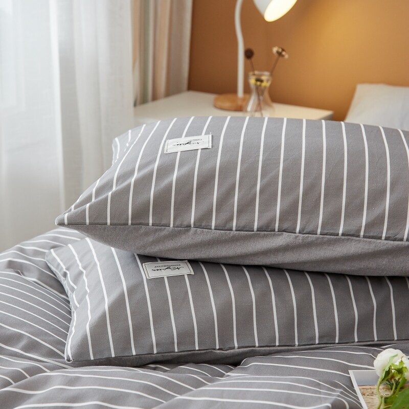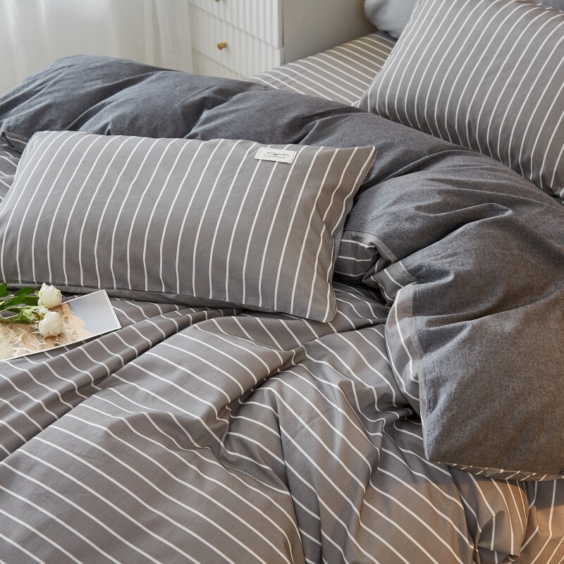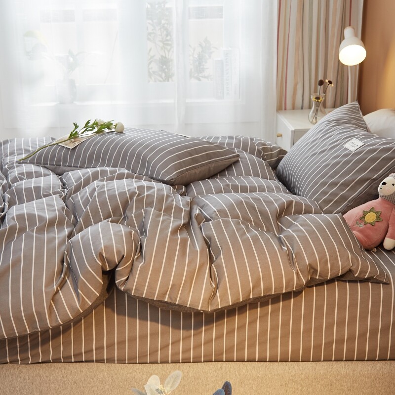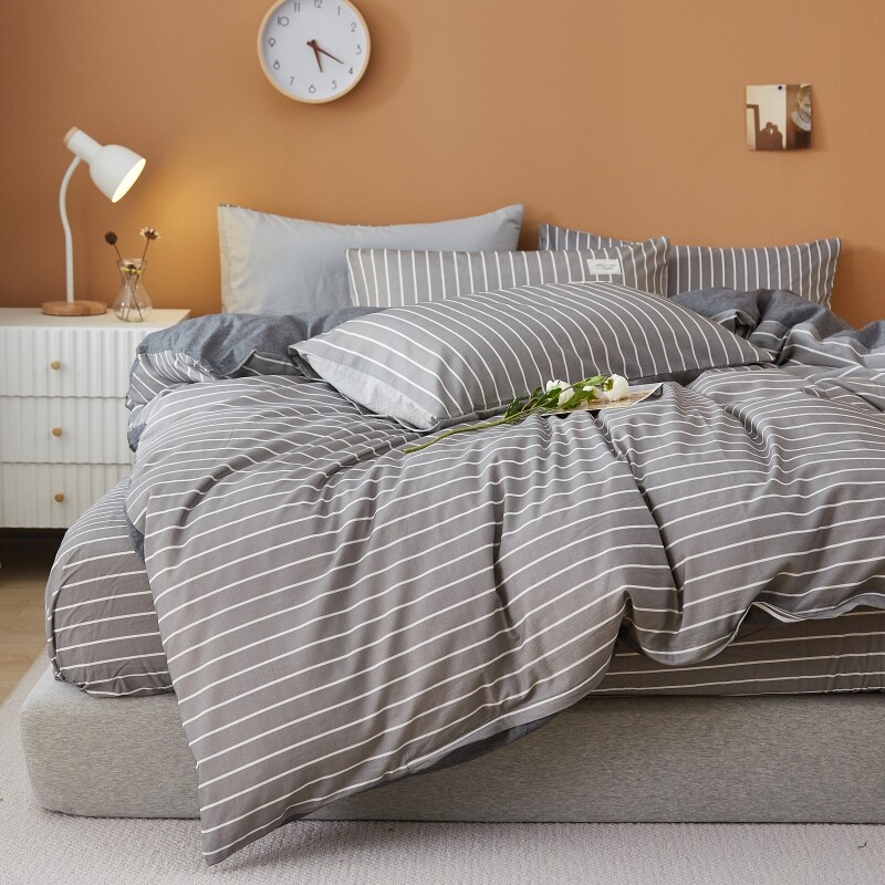 2024新款无印风水洗棉亲肤简约学生三件套 麻灰白条