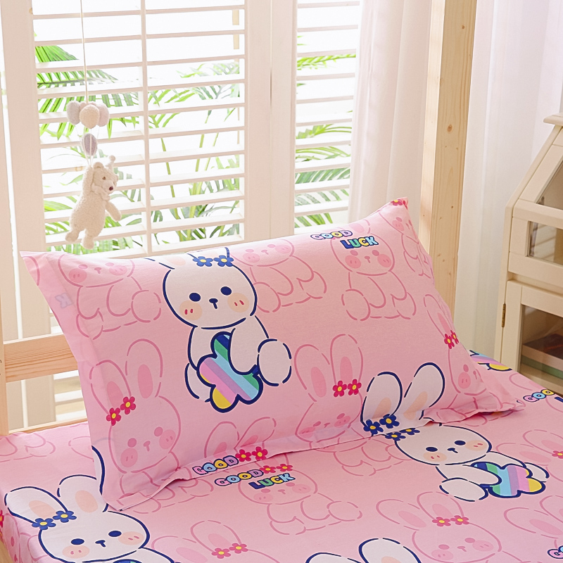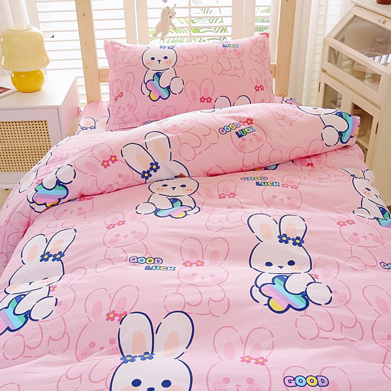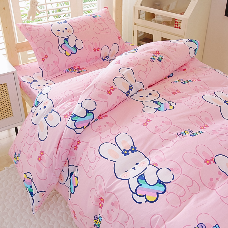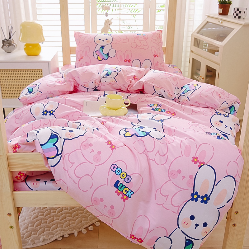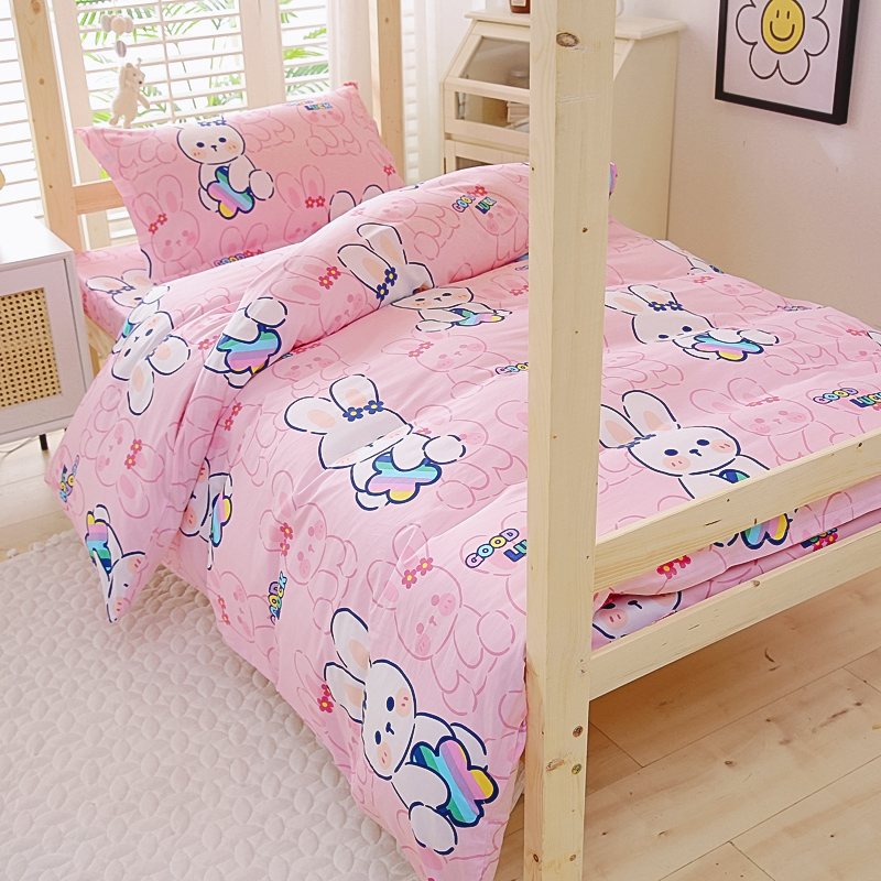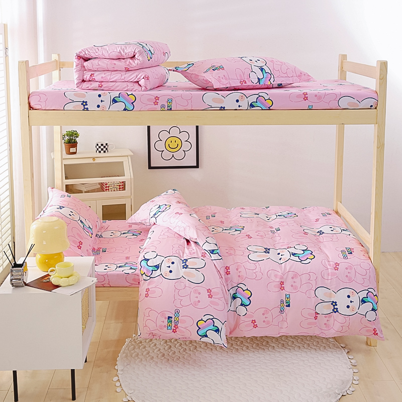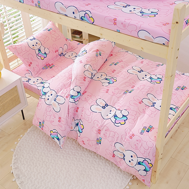 当前位置: 91家纺网 > 商品网购 > 床品套件 > 三件套 > 名优家纺 2024新款全棉三件套学生宿舍上下铺套件 恋爱小兔