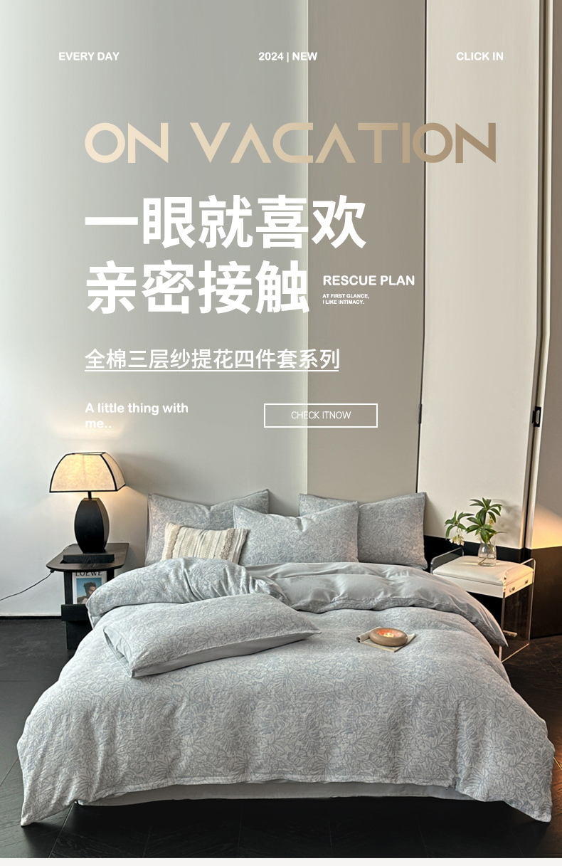 当前位置: 91家纺网 > 商品网购 > 床品套件 > 四件套 > 全棉普通四件套 > 博雅 2024新款全棉提花三层纱磨毛四件套(上图送2000元货款) 摩登森林(兰)