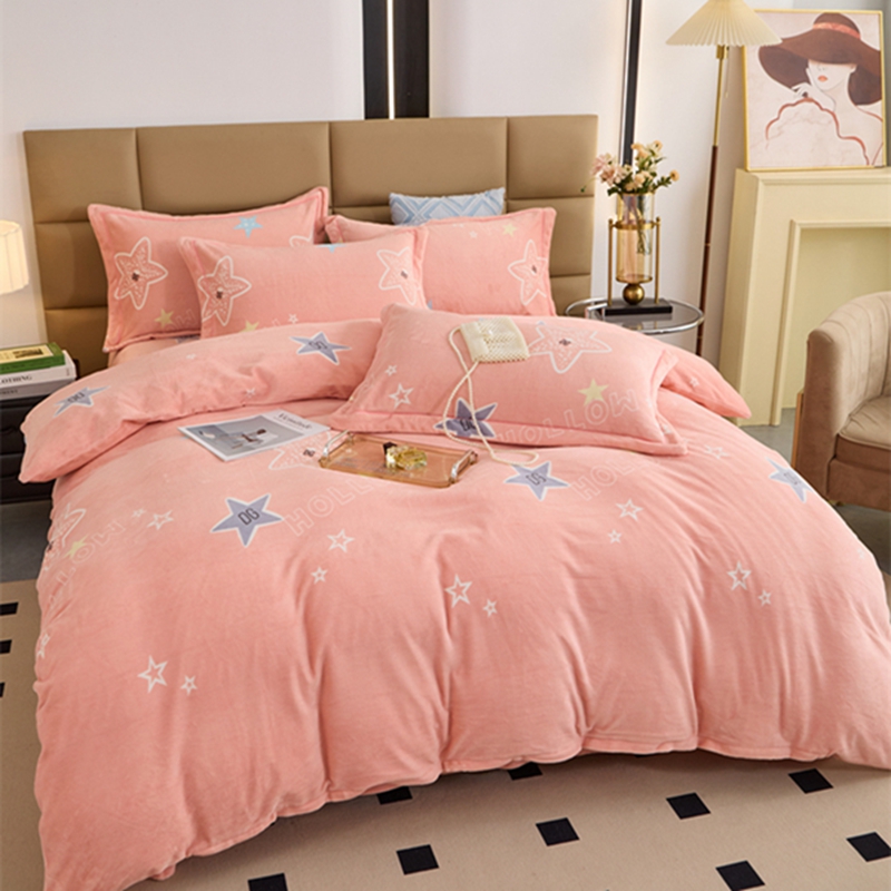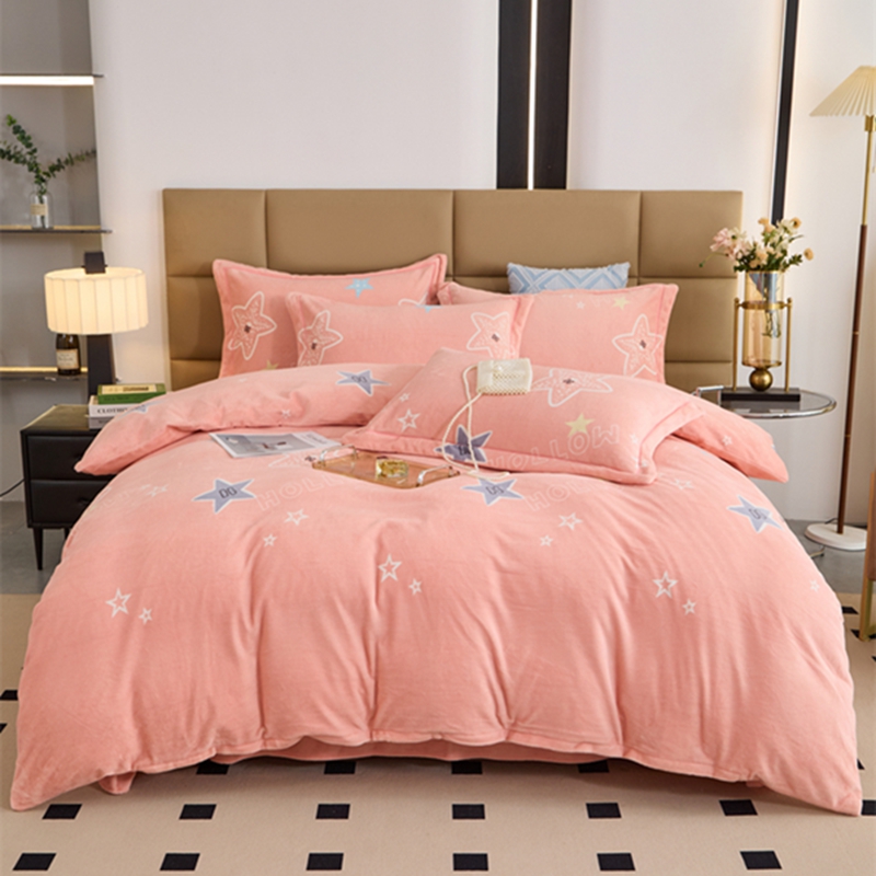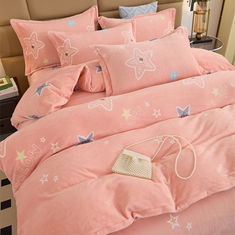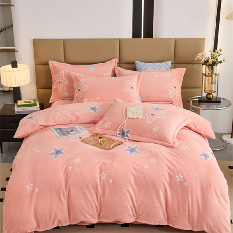 商品名称:卡迪亚 2024新款全消光牛奶绒印花四件套 星星