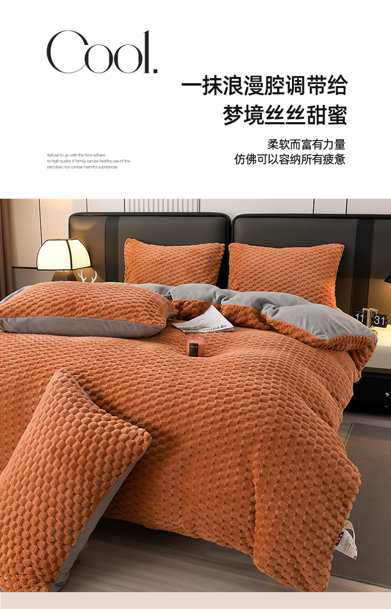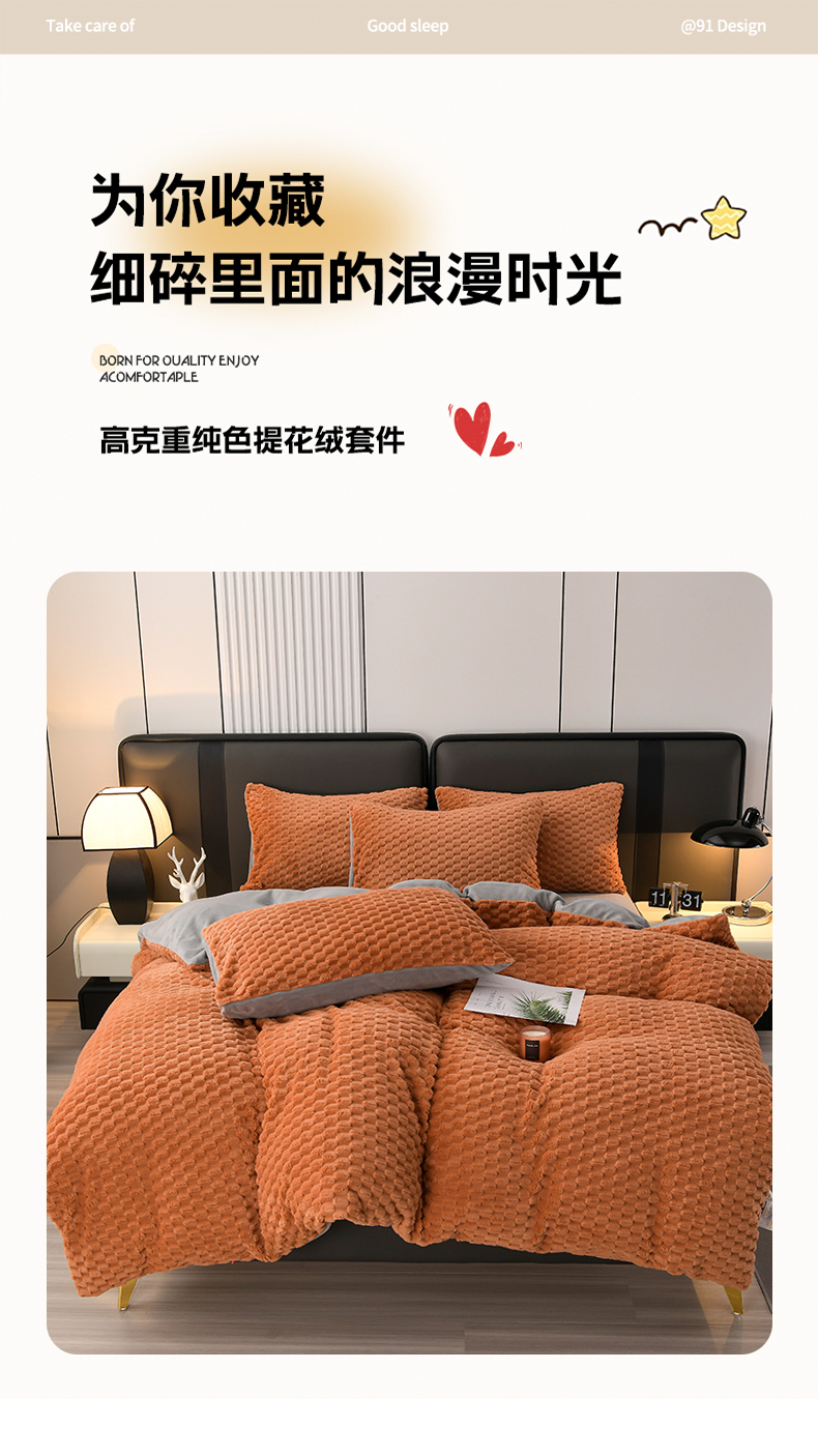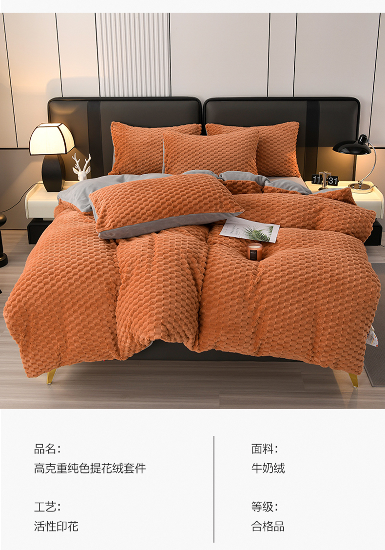 当前位置: 91家纺网 > 商品网购 > 床品套件 > 四件套 > 提花四件套 > 菡宝 2024新款高克重金龟绒纯色提花四件套 桔色