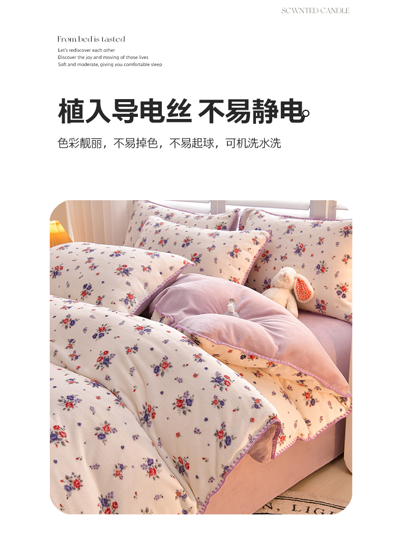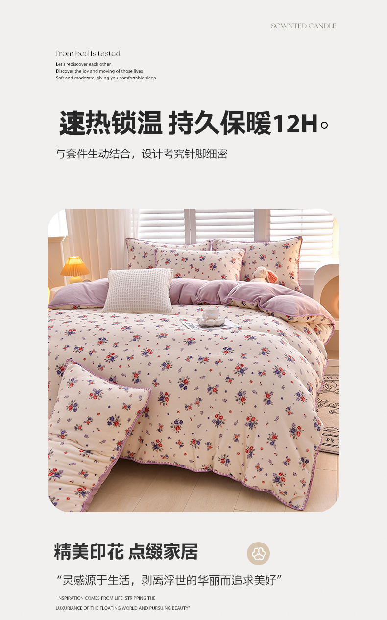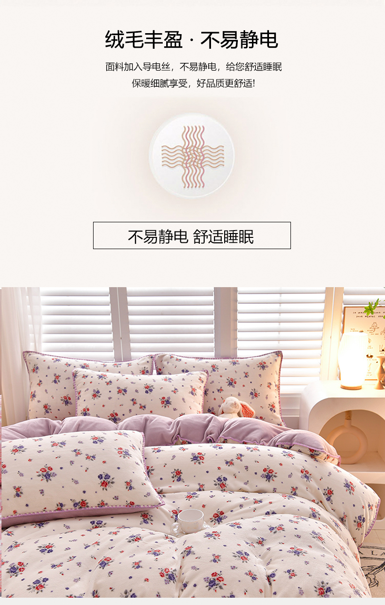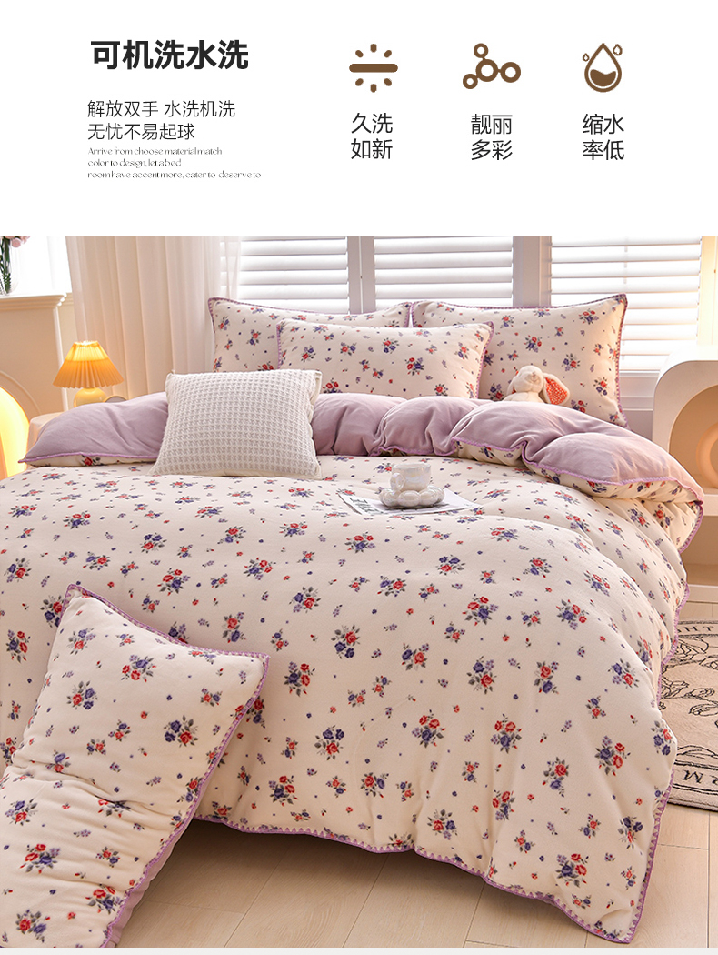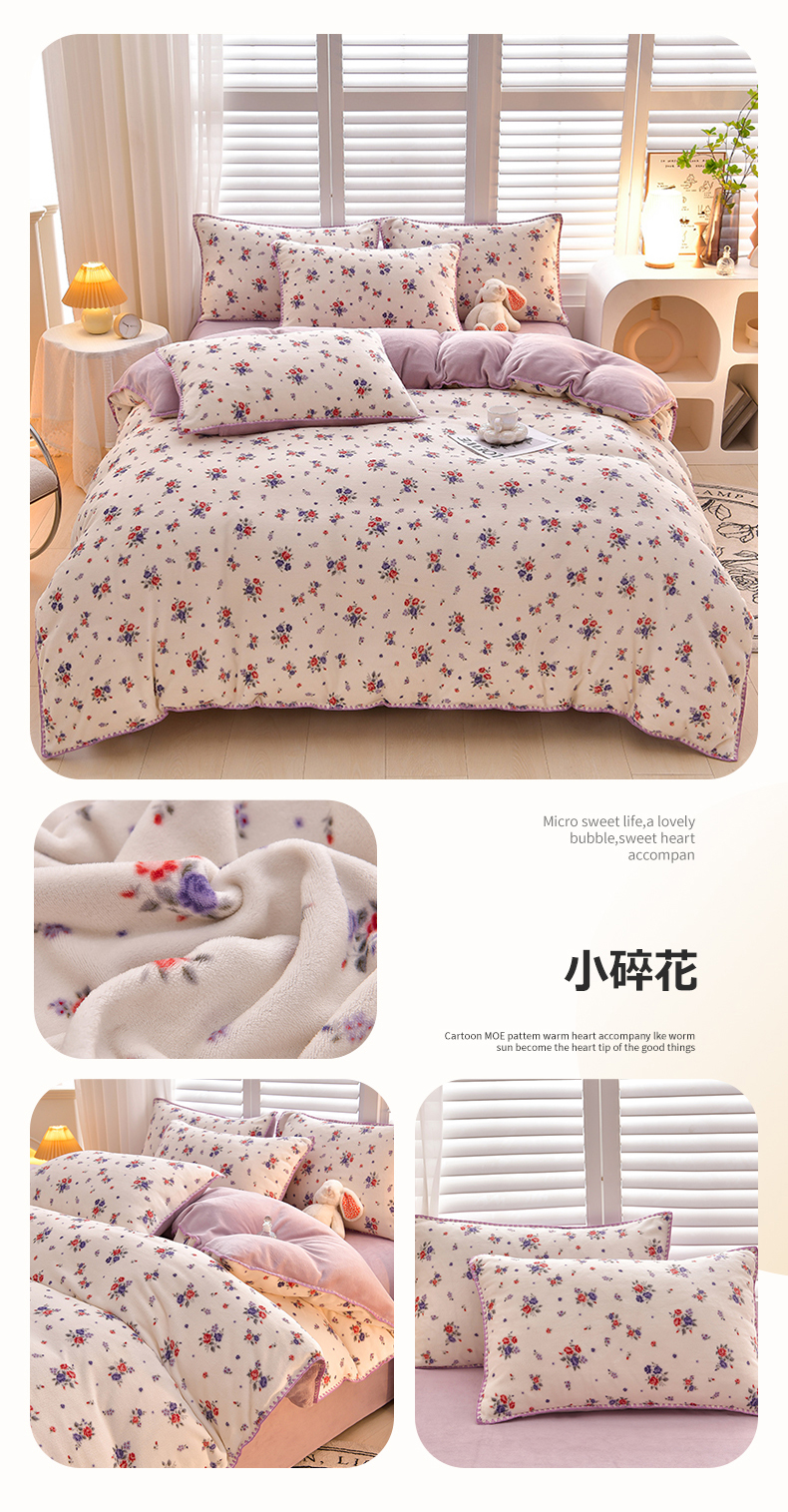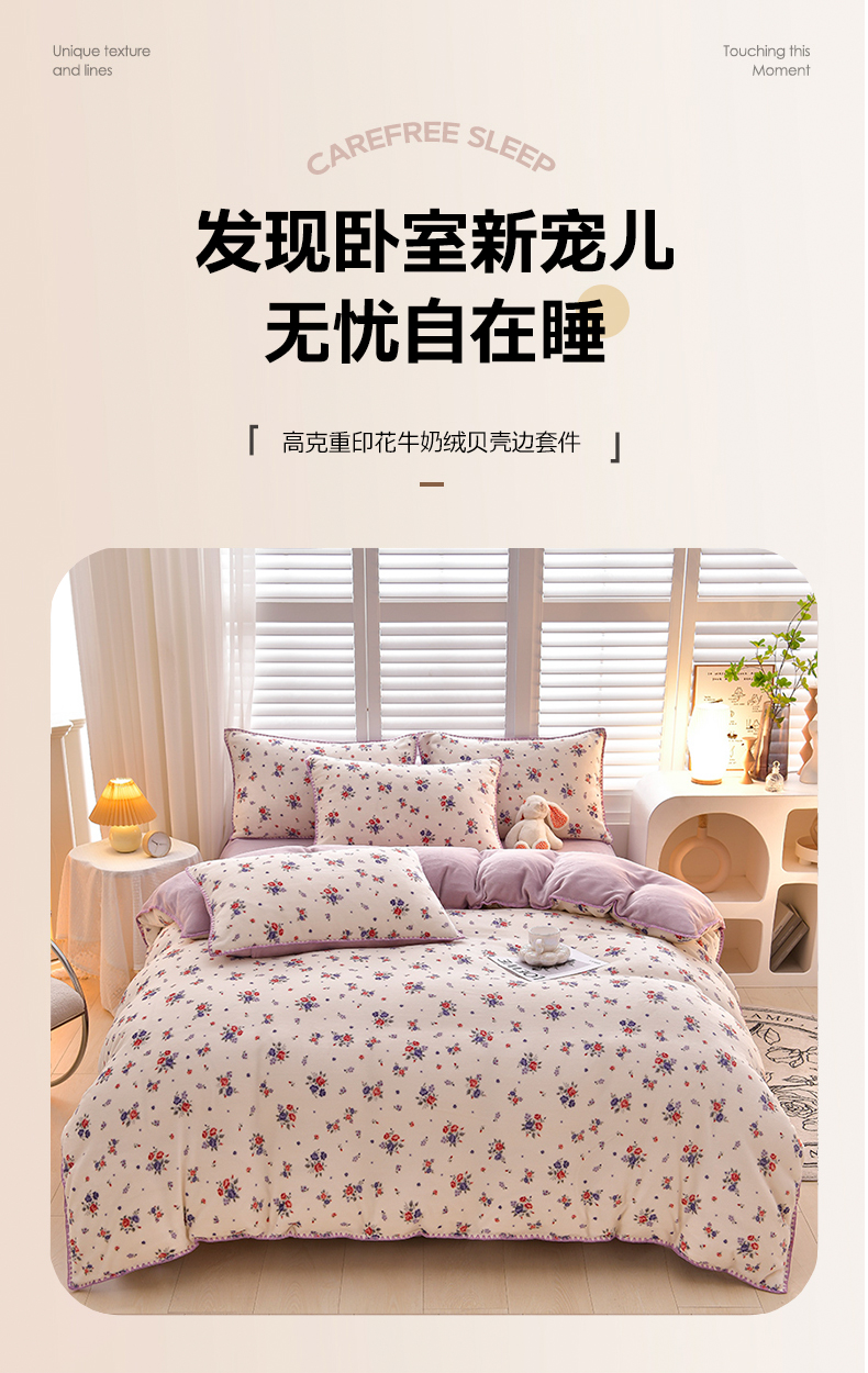 当前位置: 91家纺网 > 商品网购 > 床品套件 > 四件套 > 牛奶绒四件套 > 菡宝 2024新款高克重印花贝壳边牛奶绒四件套 小碎花