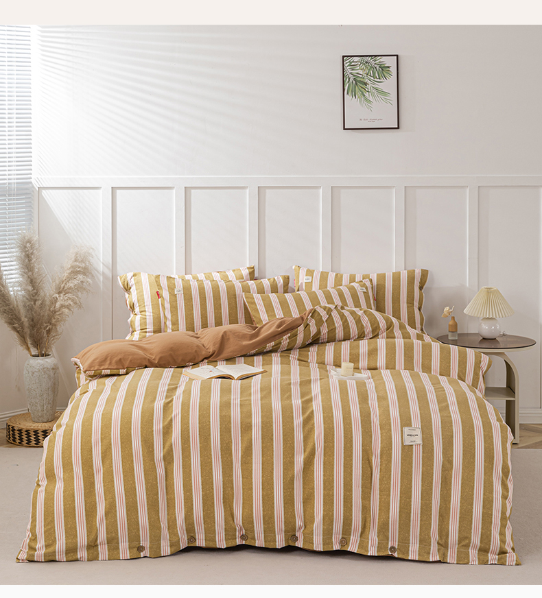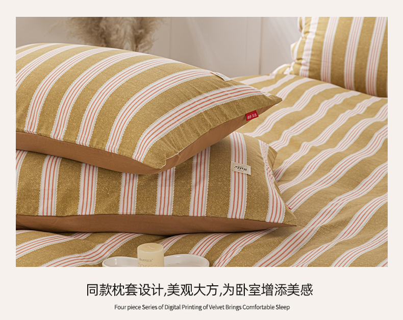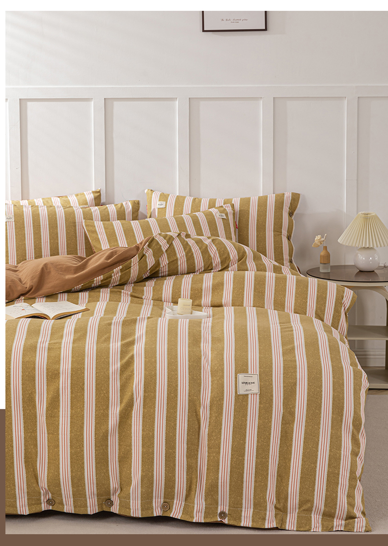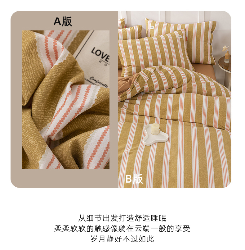 当前位置: 91家纺网 > 商品网购 > 床品套件 > 四件套 > 水洗棉四件套 > 睡美美家纺 2024新款加厚水洗棉四件套-条纹系列 卡其条纹