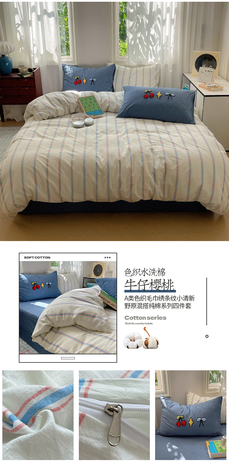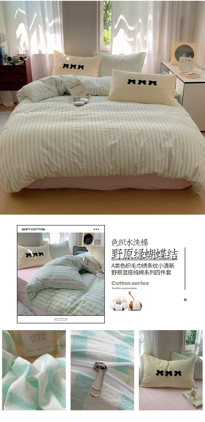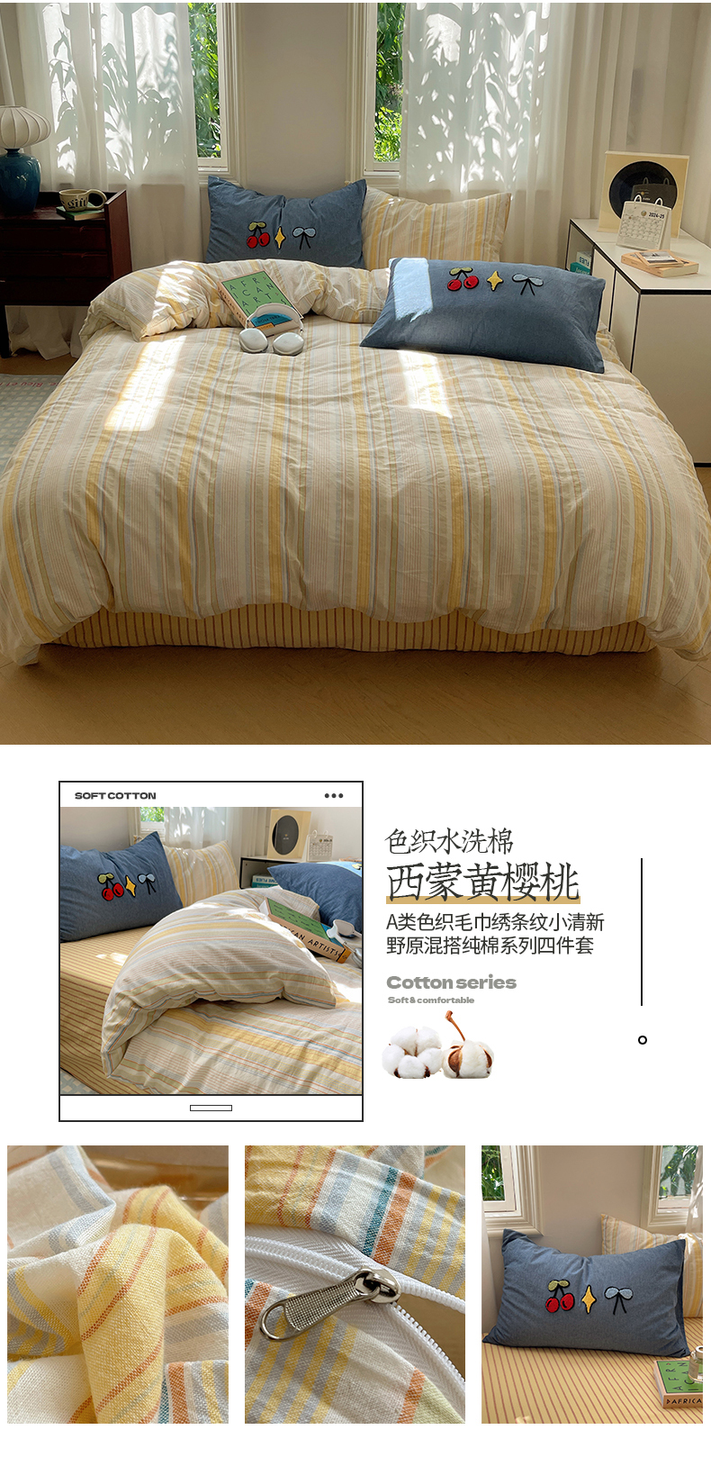 商品名称:(总)桃子家居 2024新款A类色织毛巾绣条纹小清新野原混搭纯棉系列四件套