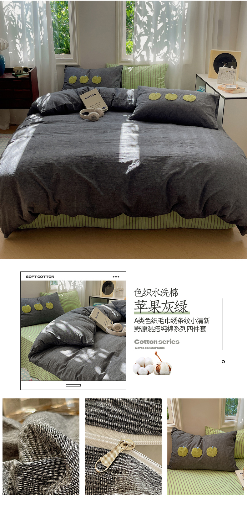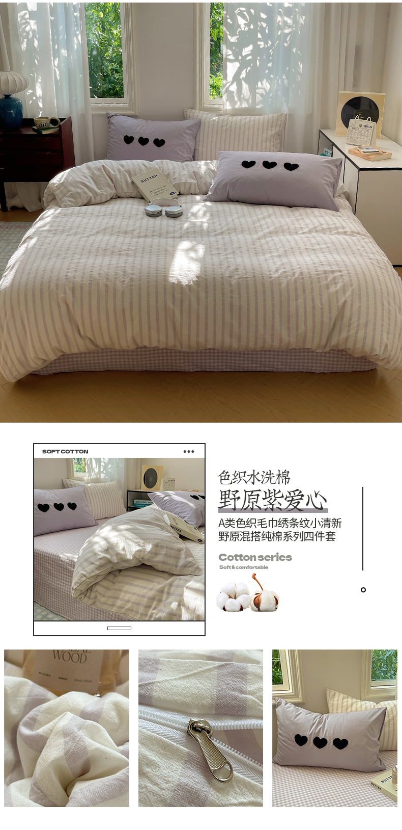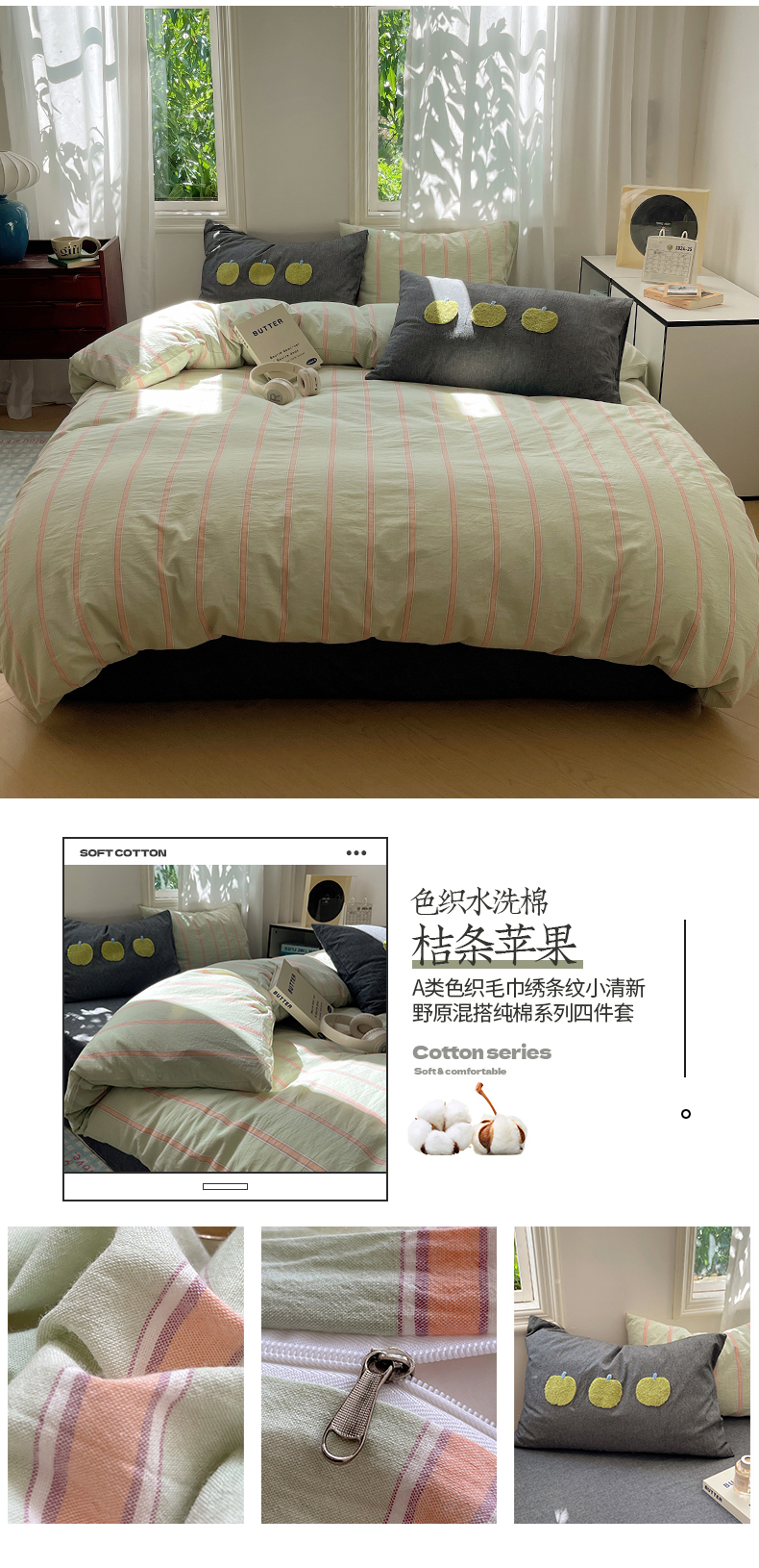 商品名称:(总)桃子家居 2024新款A类色织毛巾绣条纹小清新野原混搭纯棉系列四件套