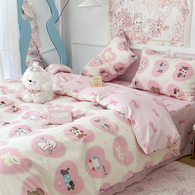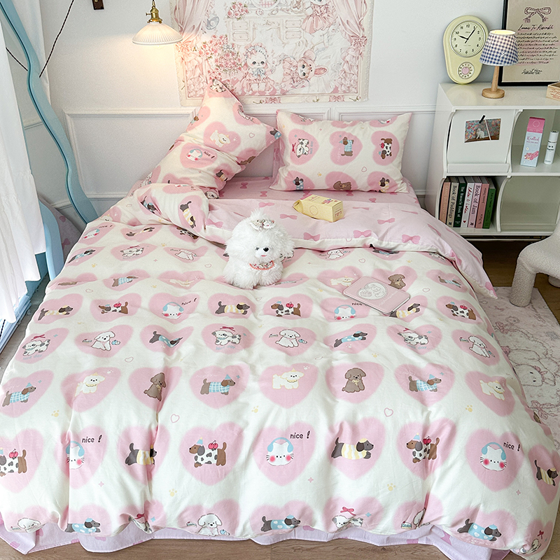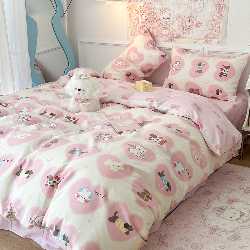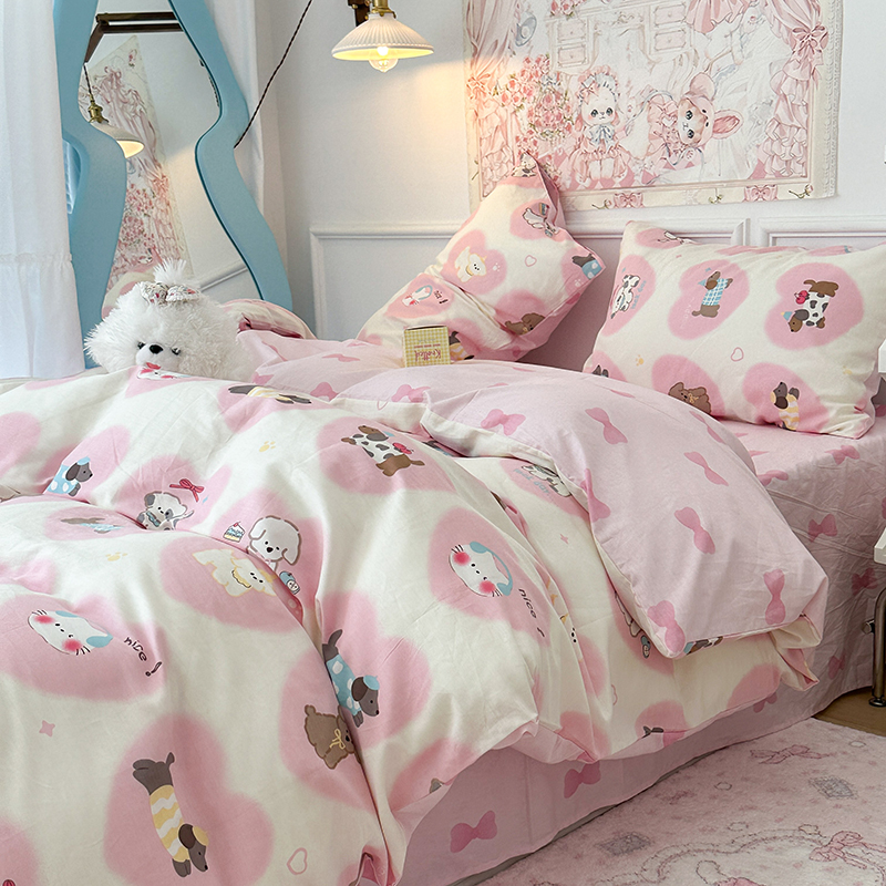 昔可家纺 2024新款13070全棉四件套系列第二批 粉心萌宠