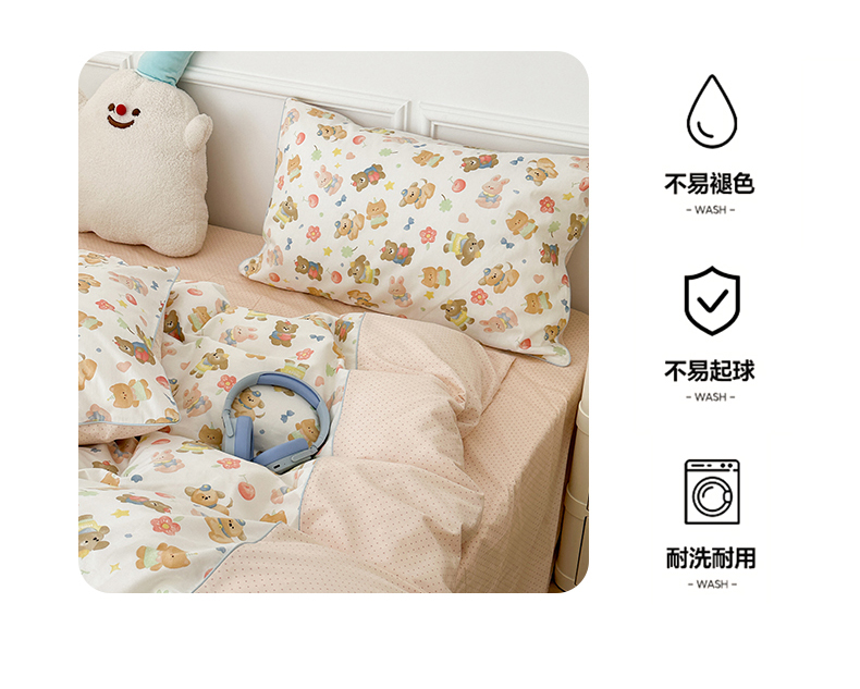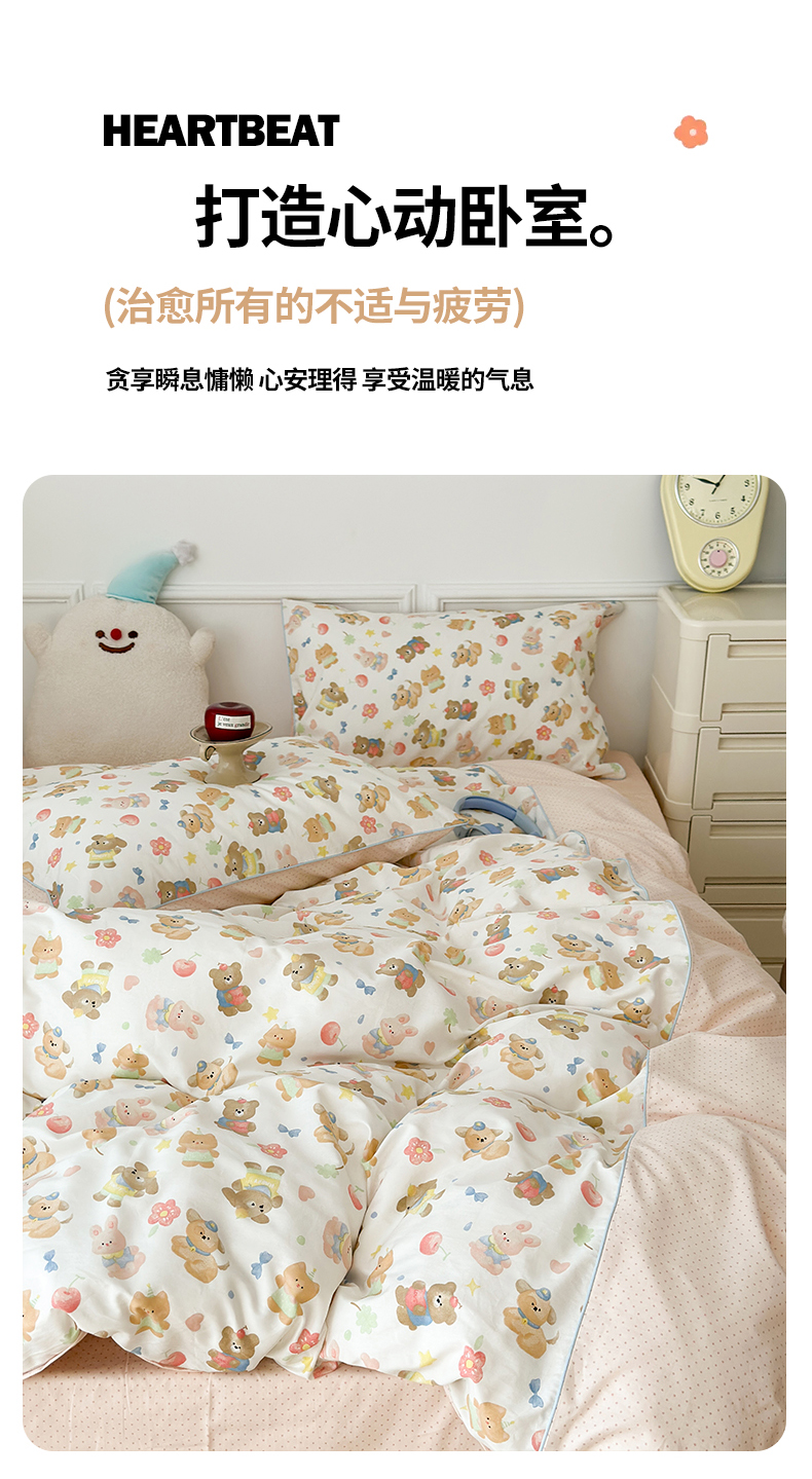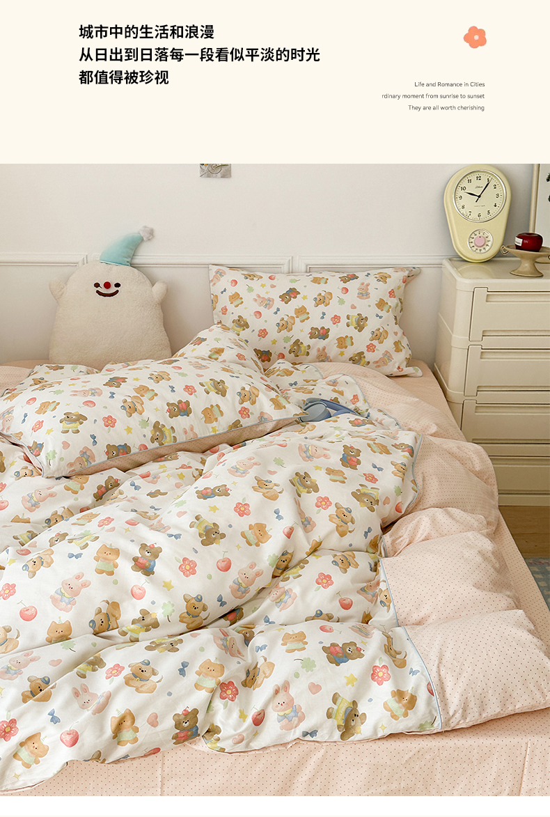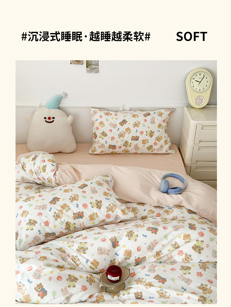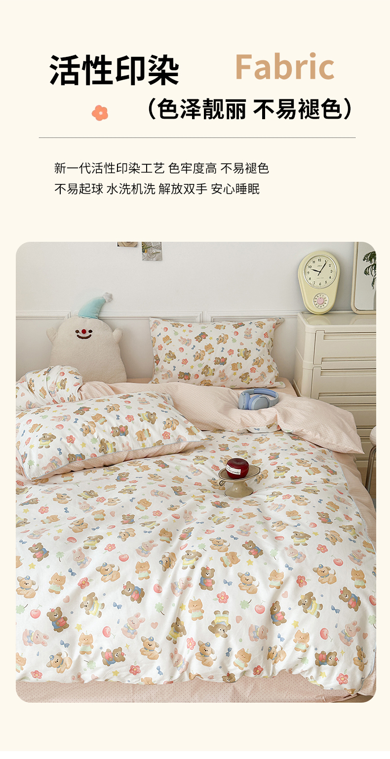 (总)昔可 2023新款学生季卡通普通款四件套,彩色气球熊,彩条恐龙,憨憨熊,花蜜小兔,蘑菇兔,圈圈草莓,蔬菜小兔,郁金香小萌狗