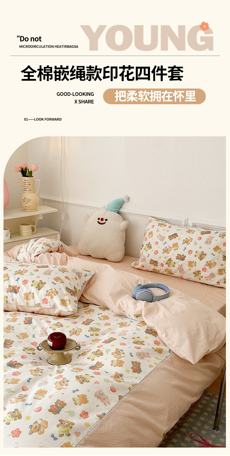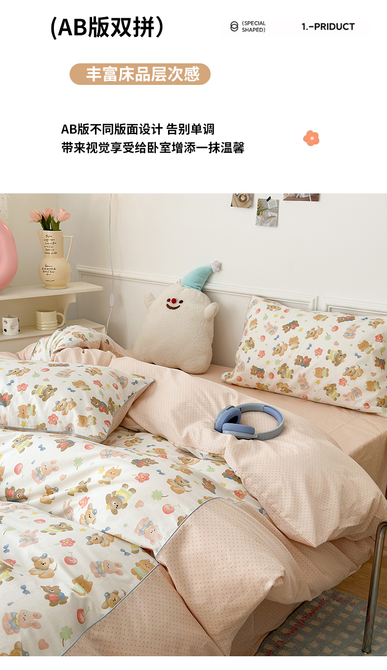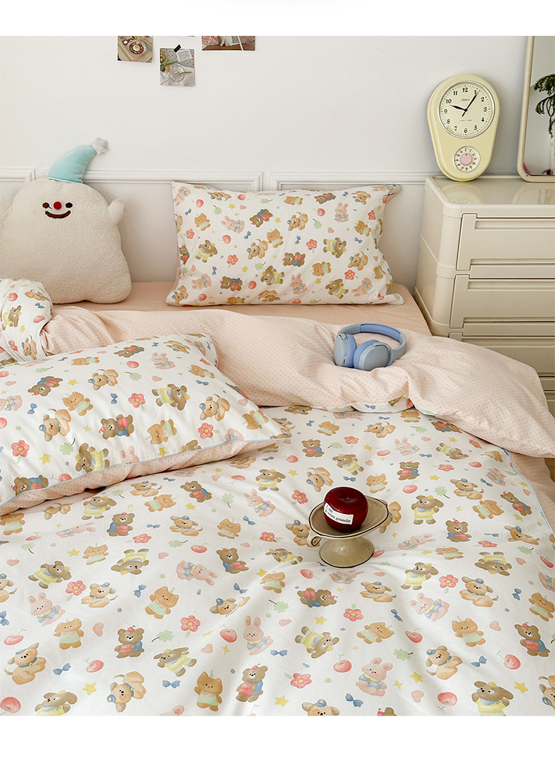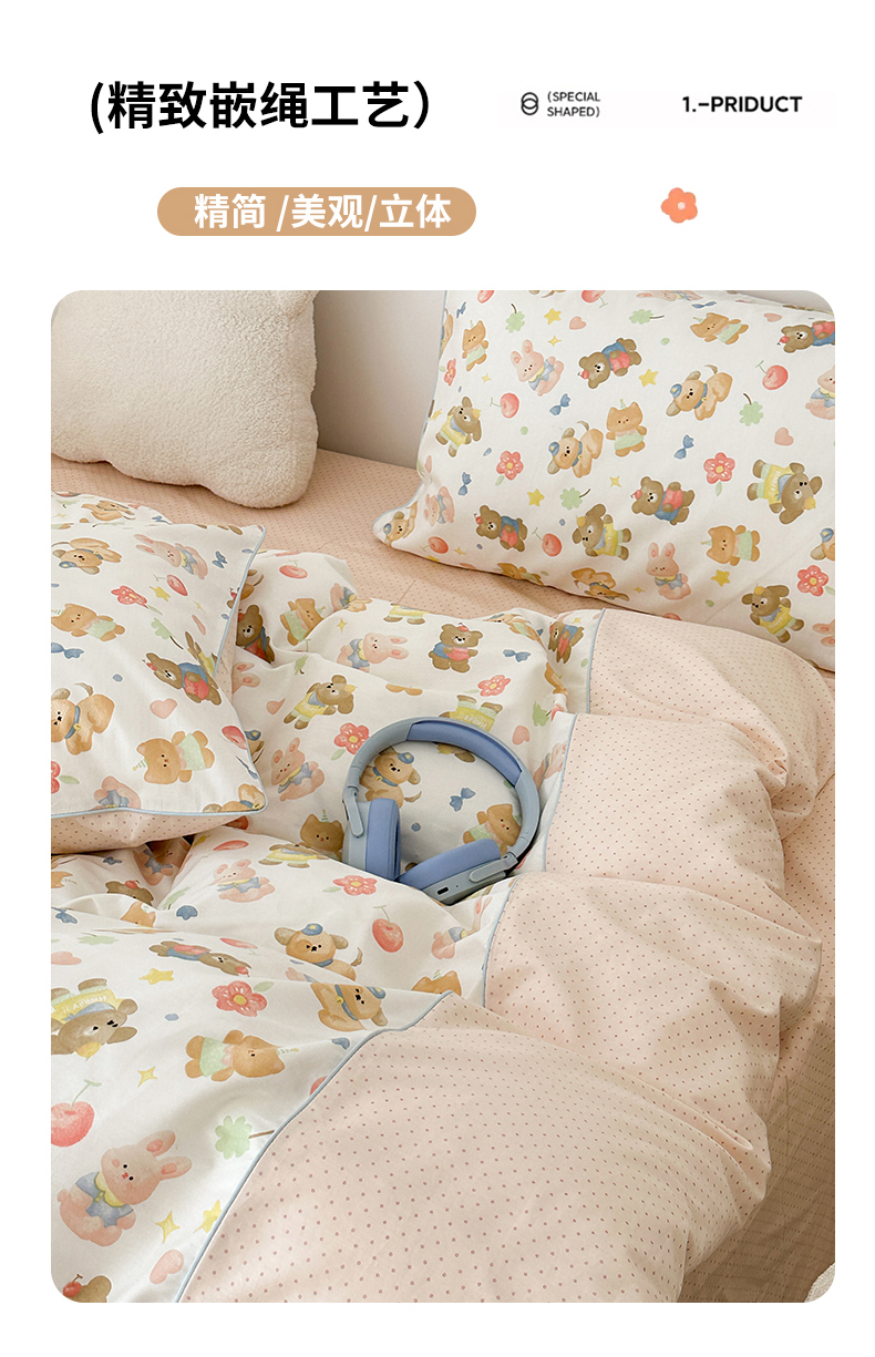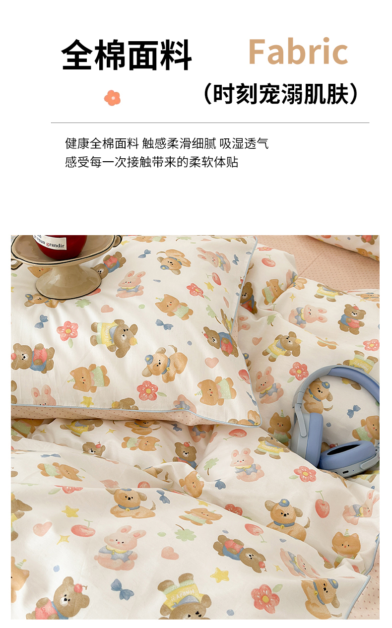 (总)昔可 2023新款学生季卡通普通款四件套,彩色气球熊,彩条恐龙,憨憨熊,花蜜小兔,蘑菇兔,圈圈草莓,蔬菜小兔,郁金香小萌狗