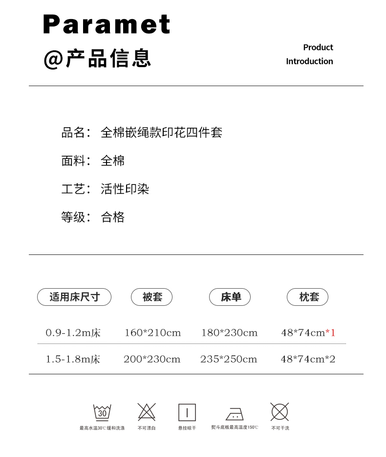 商品名称:(总)昔可家纺 2024新款全棉拼接嵌绳款四件套