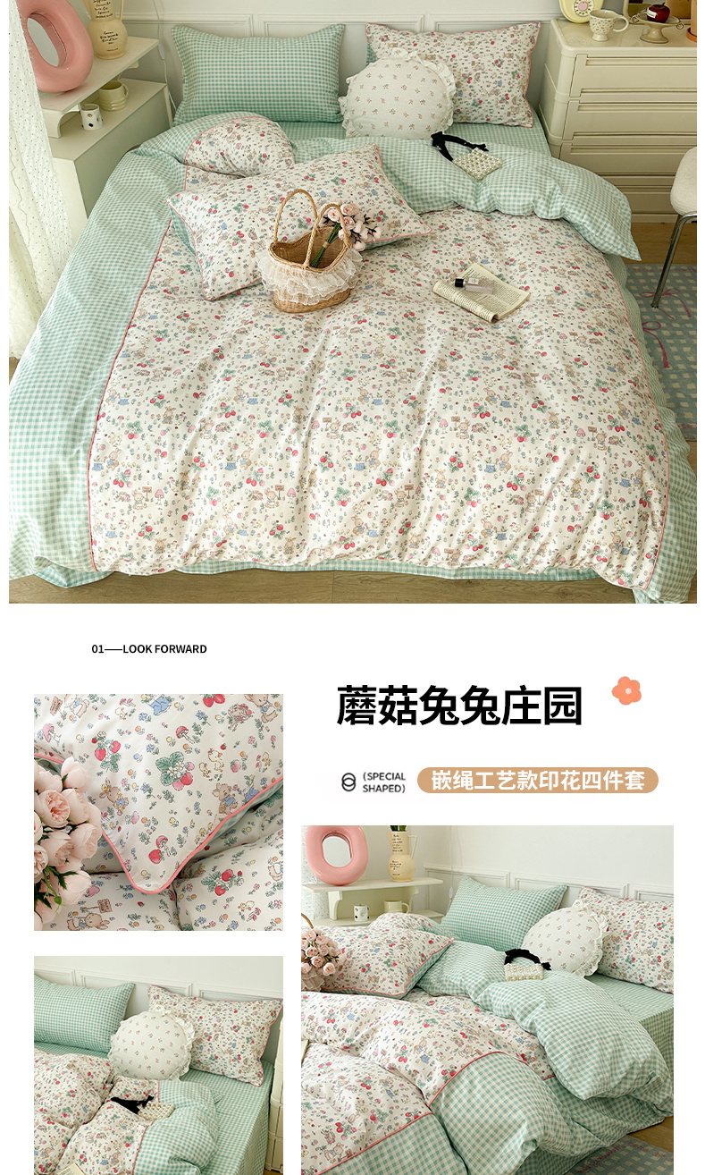 (总)昔可 2023新款全棉四件套-第五批,春日采花小兔,复古波西,落樱紫花,绿野小兔,排排郁金香,芍药女孩,叶子樱桃