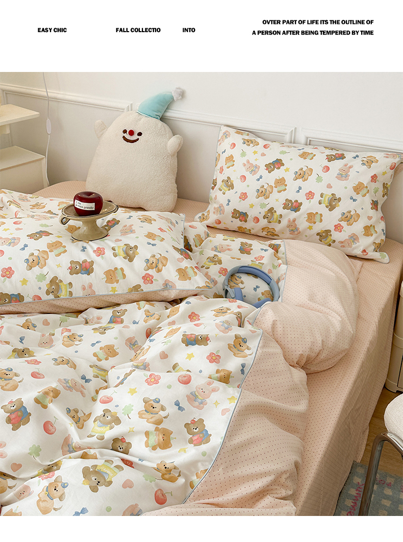 (总)昔可家纺 2024新款印花牛奶绒四件套系列-洛丽塔风,萝莉小兔,小熊烘焙屋,小熊玩偶屋