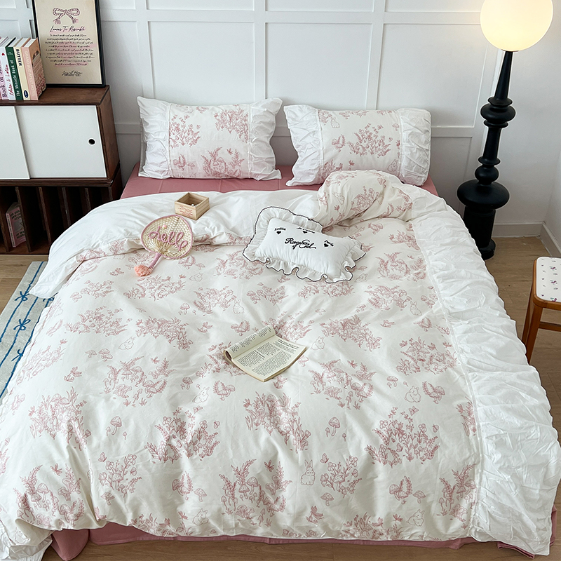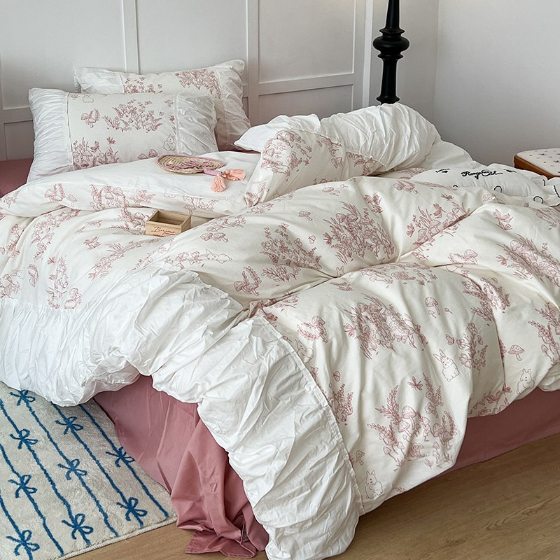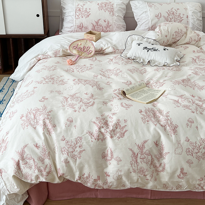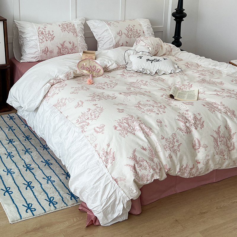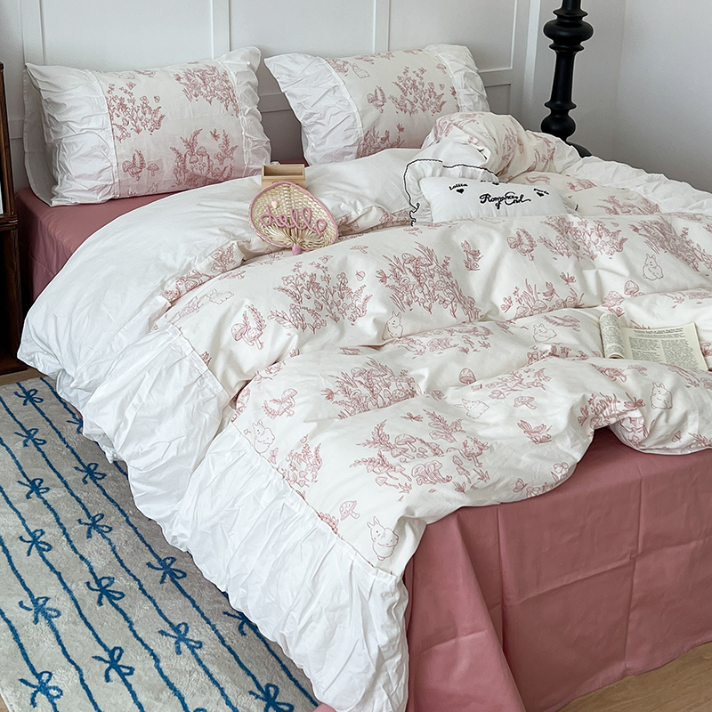 (总)昔可家纺 2024新款印花牛奶绒四件套系列-洛丽塔风,萝莉小兔,小熊烘焙屋,小熊玩偶屋