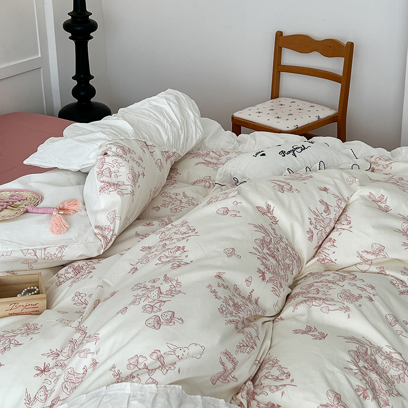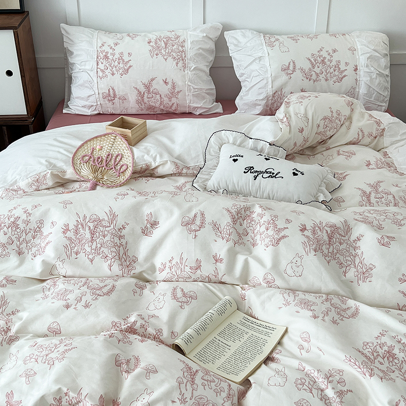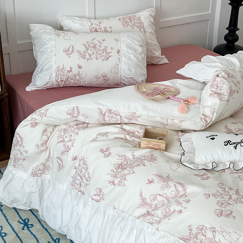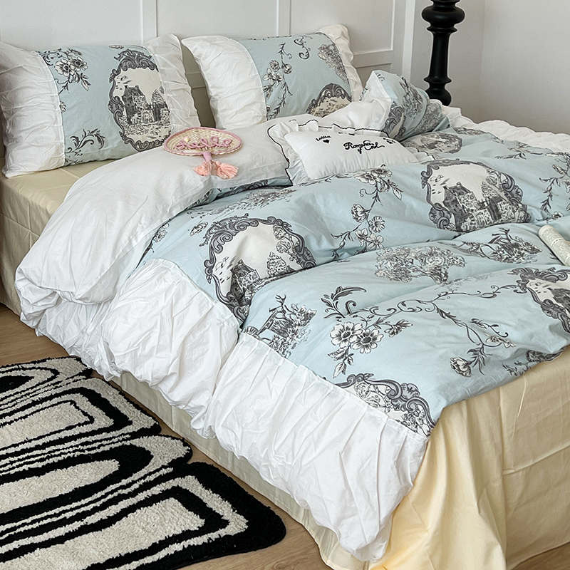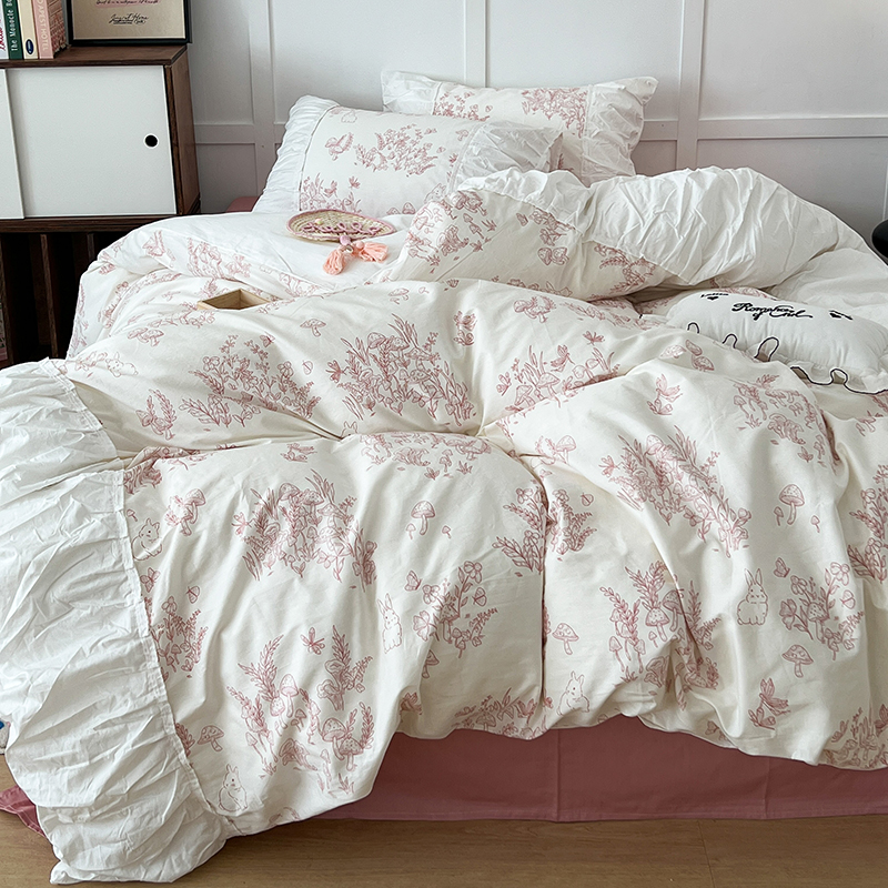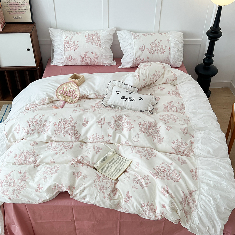 (总)昔可家纺 2024新款印花牛奶绒四件套系列-洛丽塔风,萝莉小兔,小熊烘焙屋,小熊玩偶屋