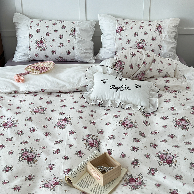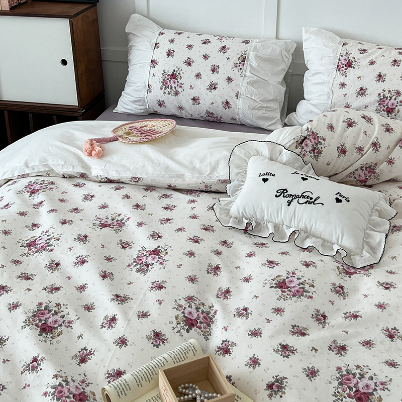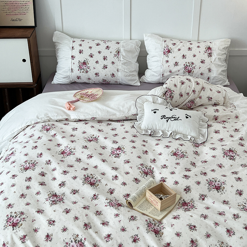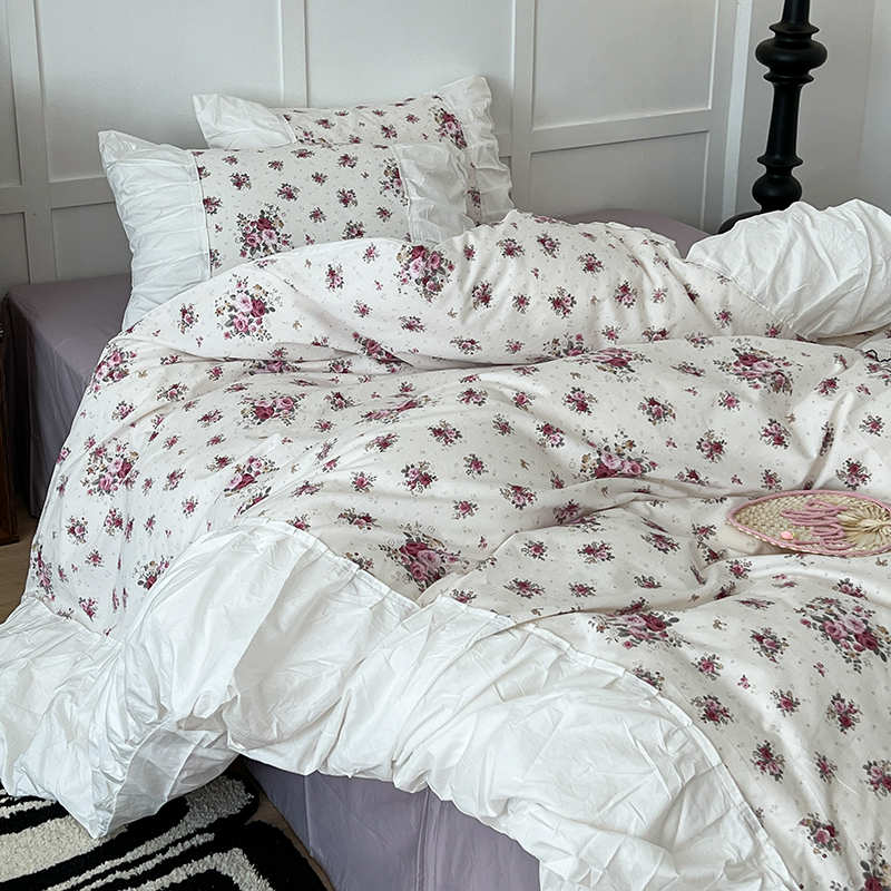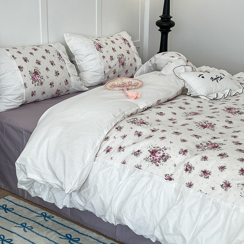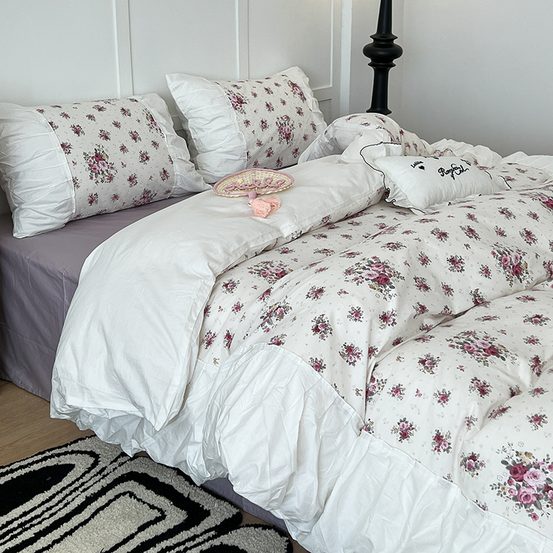 (总)昔可家纺 2023新款全棉小花系列四件套,柏林少女,小小的樱桃,紫色葡萄