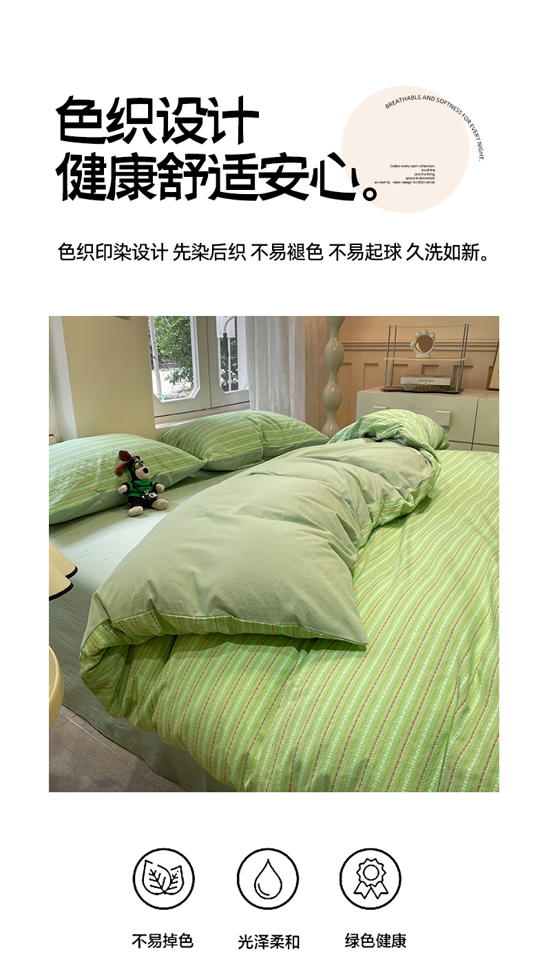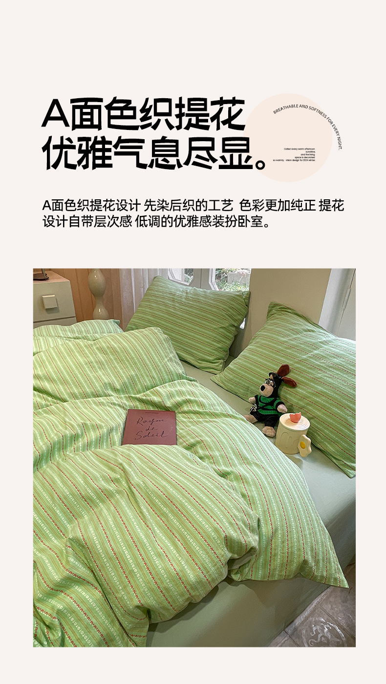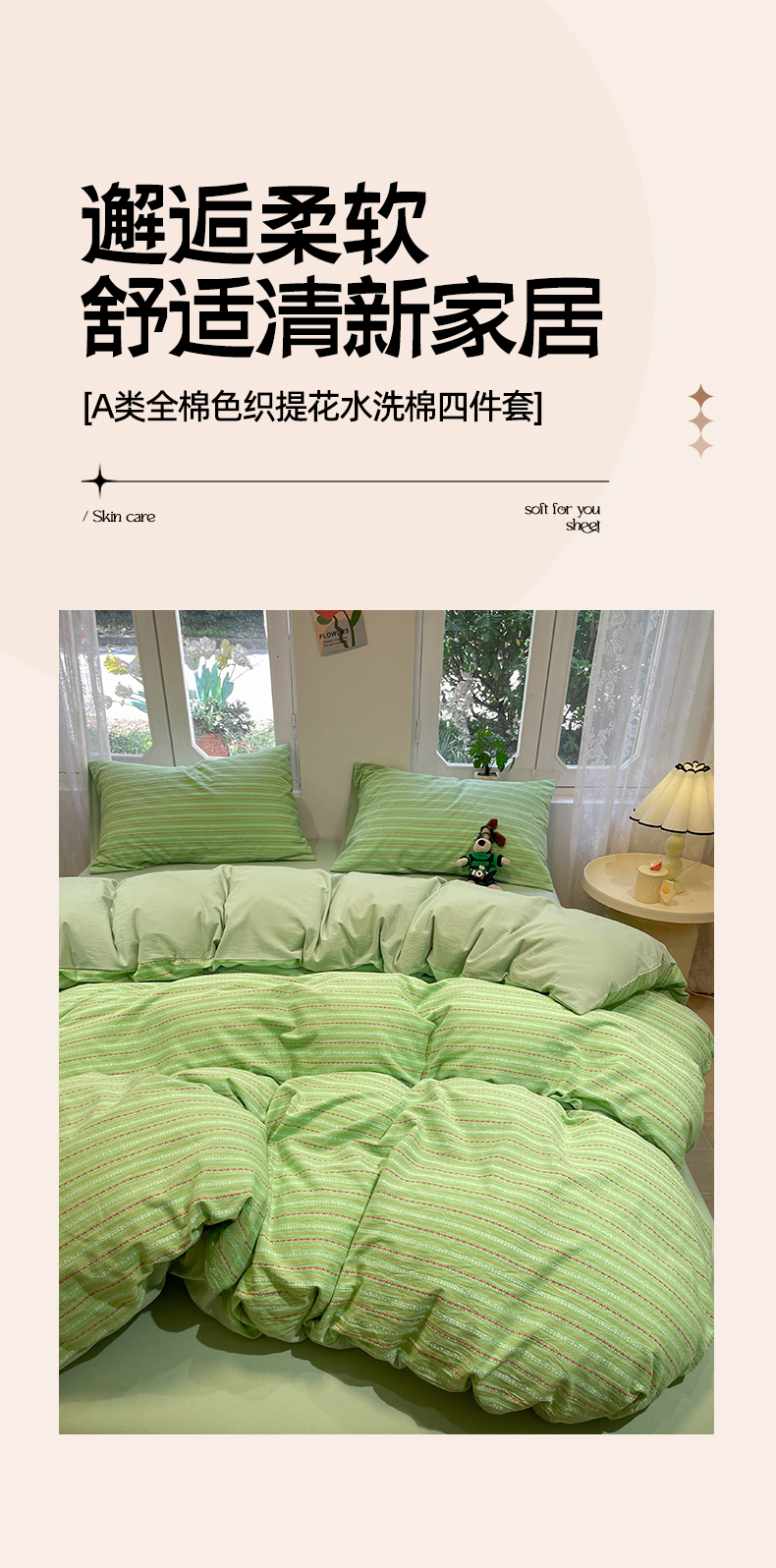 莱茵家居 2024新款色织提花全棉水洗棉四件套 美拉-嫩绿
