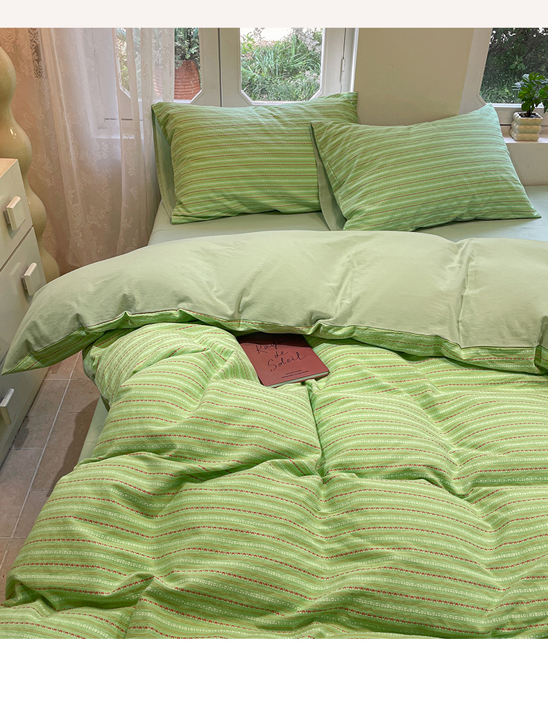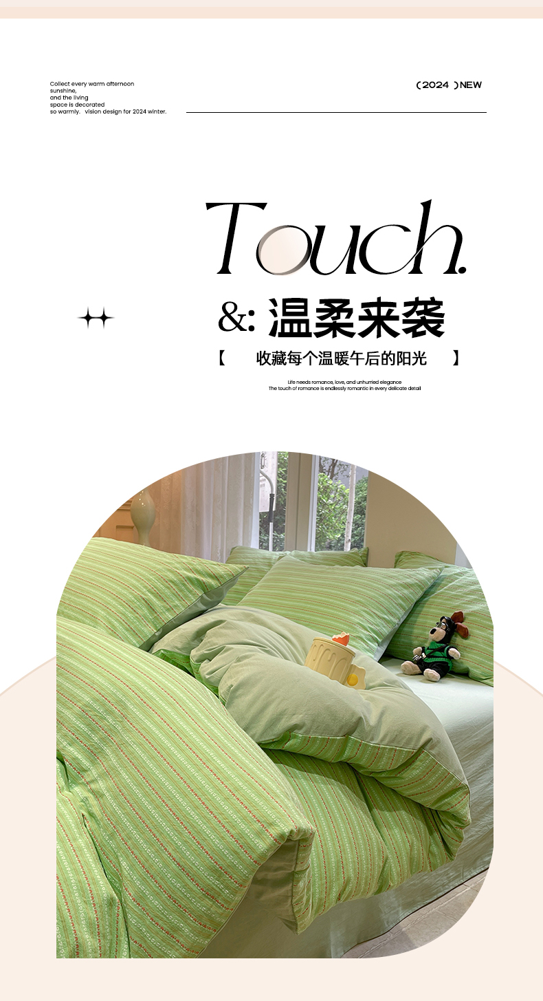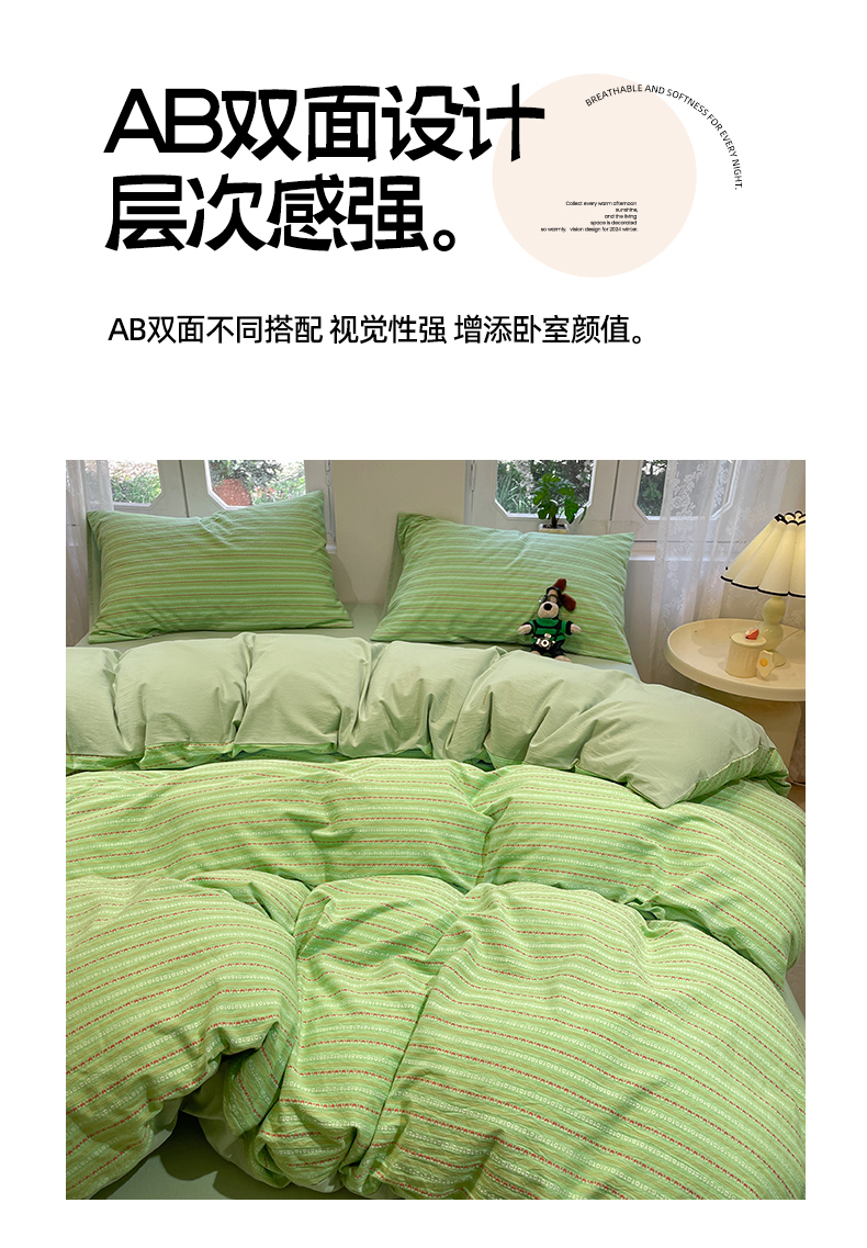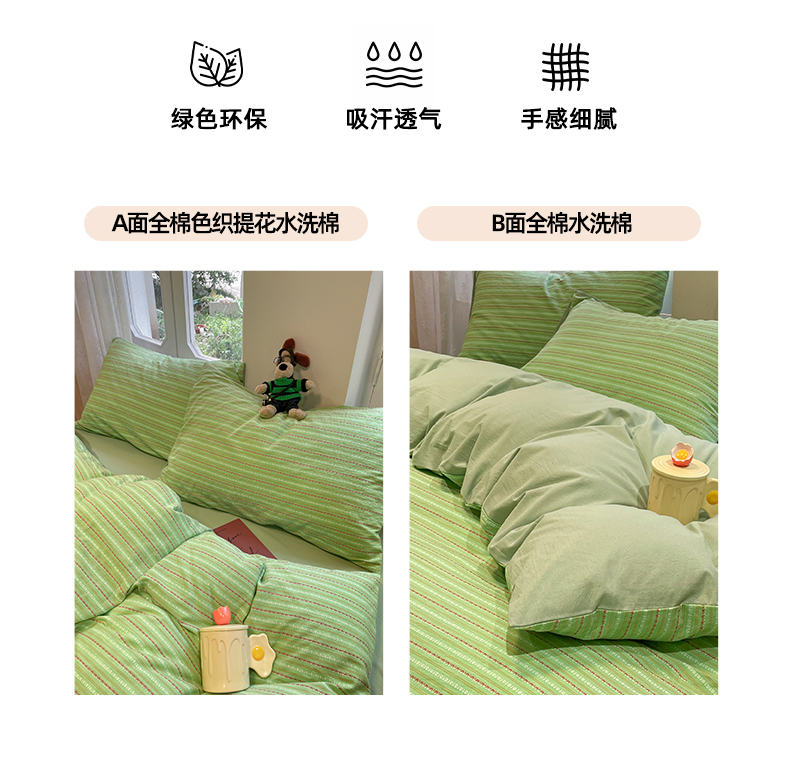 莱茵家居 2024新款色织提花全棉水洗棉四件套 美拉-嫩绿