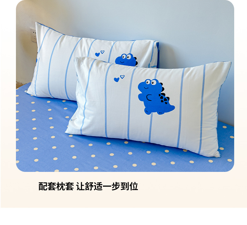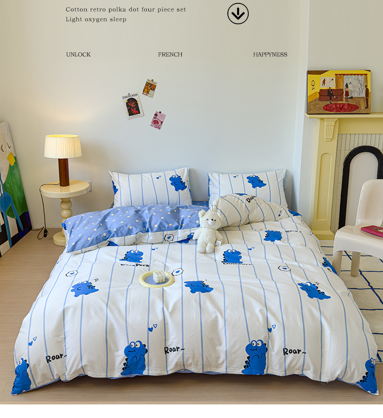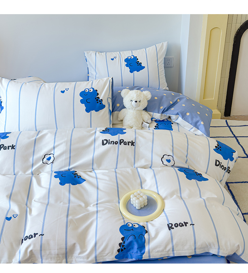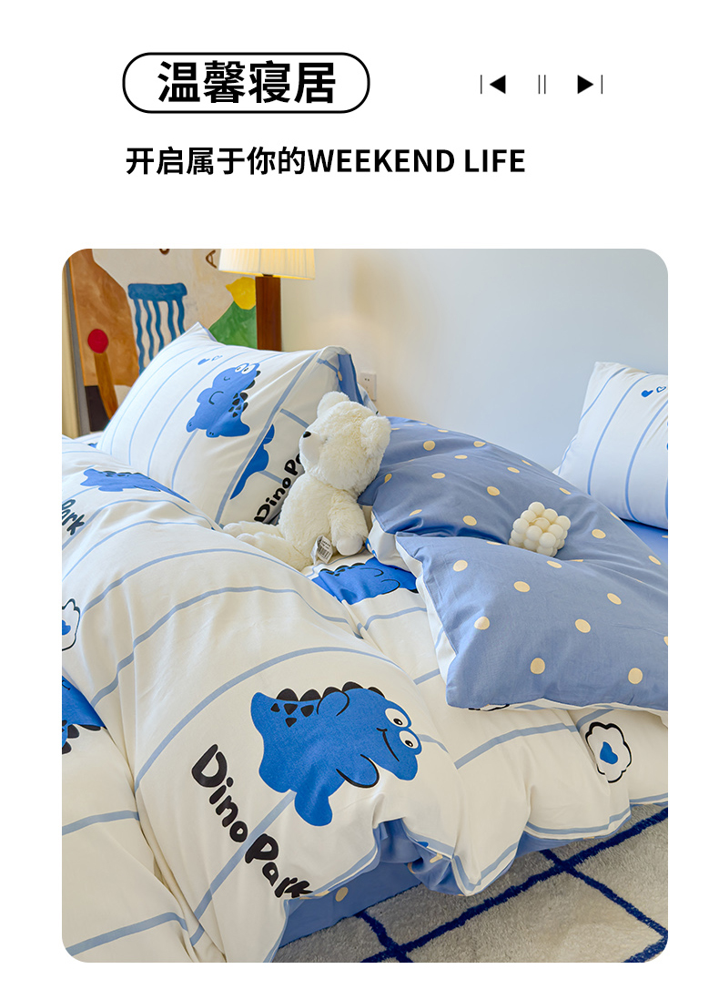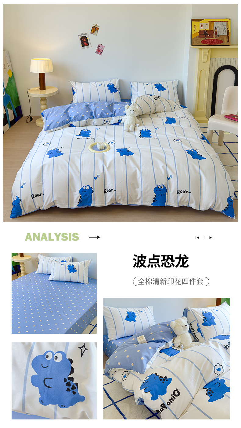 (总)感遇家纺 2022新款全棉印花四件套,格子小花,黑格恐龙,蓝色心情,浅暖