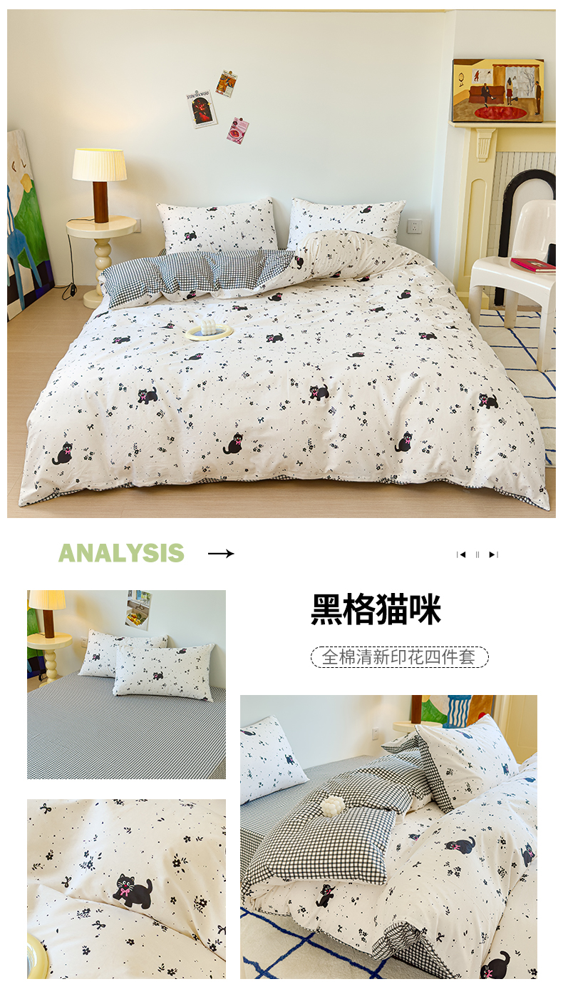(总)感遇家纺 2025新款小清新甜系全棉四件套,百丽兔,波点小女孩,点点小狗,复古樱桃,格子草莓,格子樱桃,花间牧歌,灰条猫咪,奶绿,宁夏,森林小熊猫,甜心波点