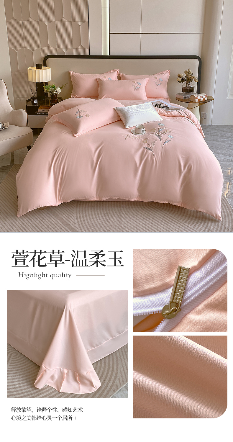 帛缔思 2024新款A类铂金棉水洗棉四件套-萱花草 萱花草-温柔玉