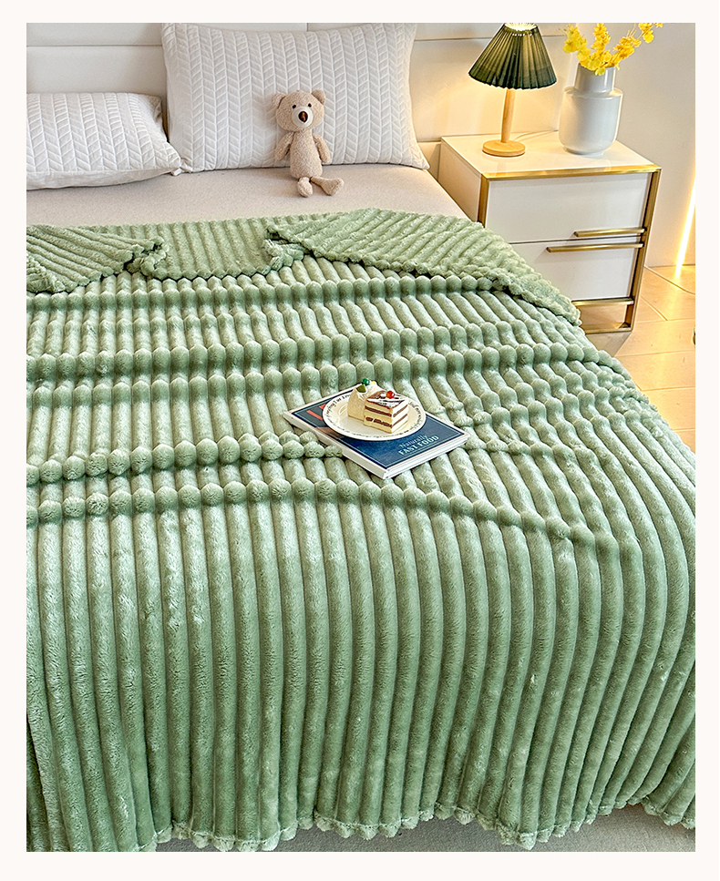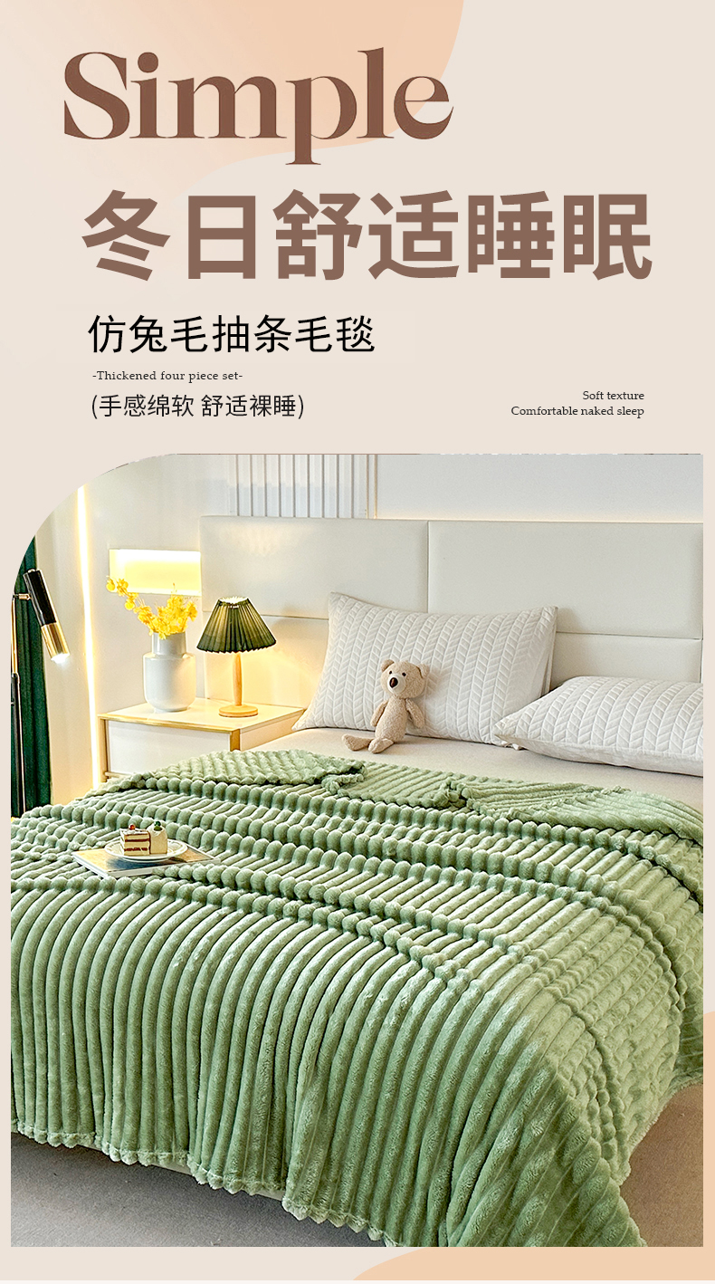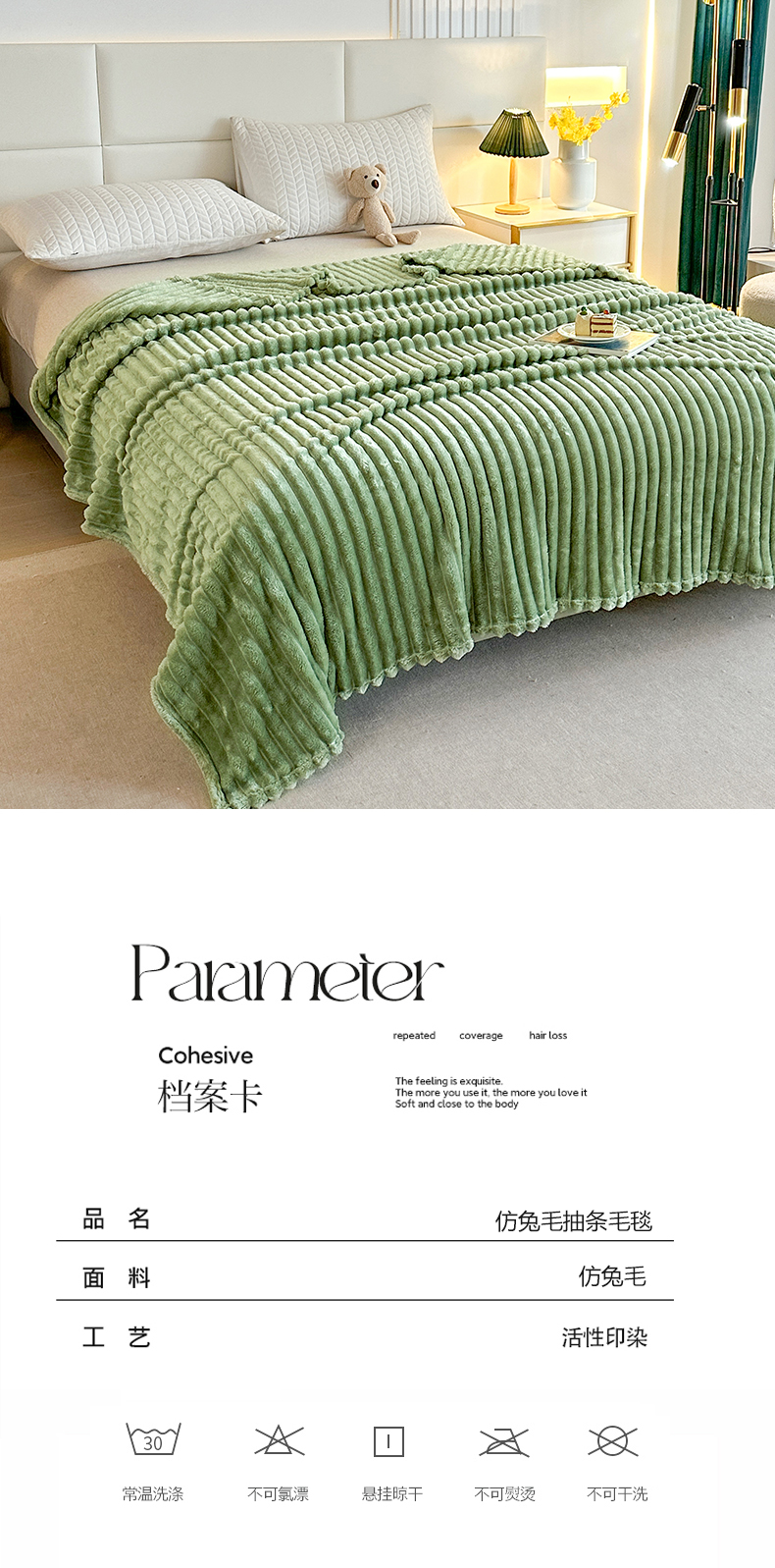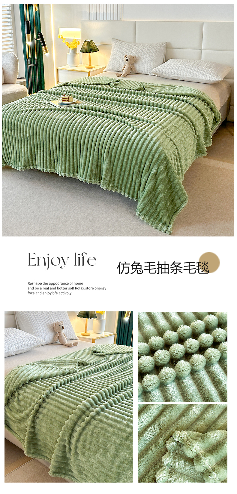 商品名称:芸锦豪 2024新款仿兔毛抽条毛毯-卷边款 绿色
